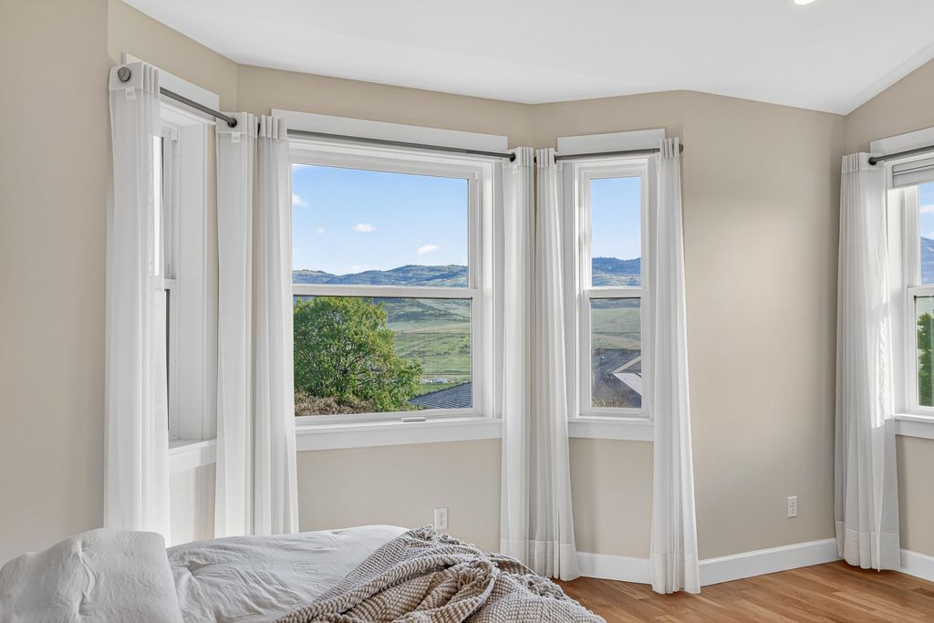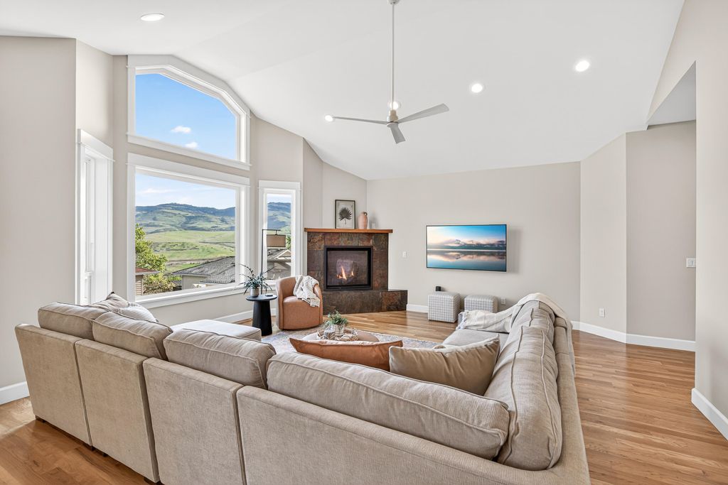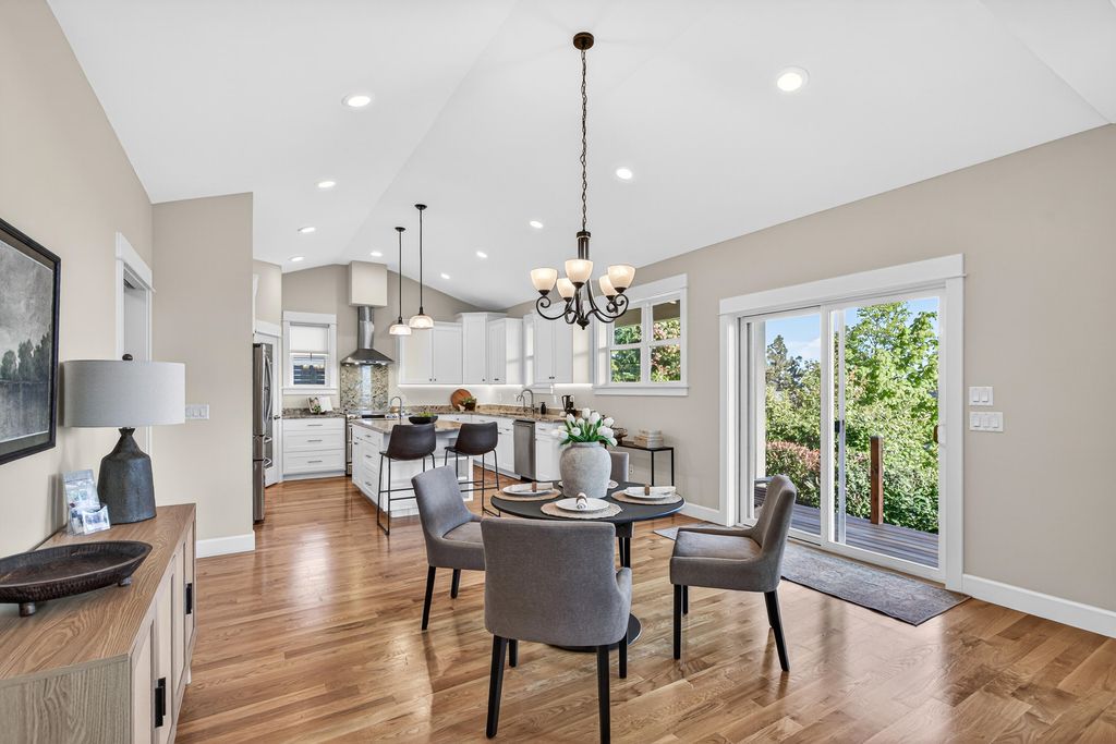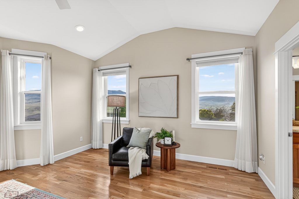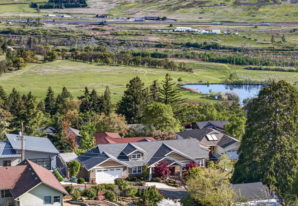 Built in 2016, this custom Ashland home offers refined single-level living with vaulted ceilings, expansive windows, and sweeping Cascade Mountain views. The light-filled great room features a large gas fireplace and an open layout ideal for entertaining. Multiple outdoor seating areas overlook beautifully maintained gardens, creating seamless indoor-outdoor living. The versatile floor plan includes a spacious primary suite with spa-like bath, a vaulted second bedroom with ensuite, a guest bedroom, office, plus a bonus room in the basement with half bath--perfect for guests or hobbies. An oversized 2-car garage with EV charger, along with a tool shed, wood shop, and abundant dry storage, provides exceptional functionality. Located just minutes from downtown Ashland, world-class theater, Lithia Park, and scenic hiking and biking trails, this home blends comfort, quality, and convenience in a prime setting. Schedule your private tour today!