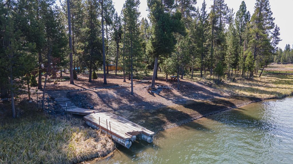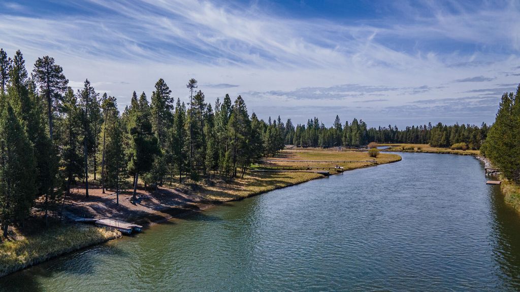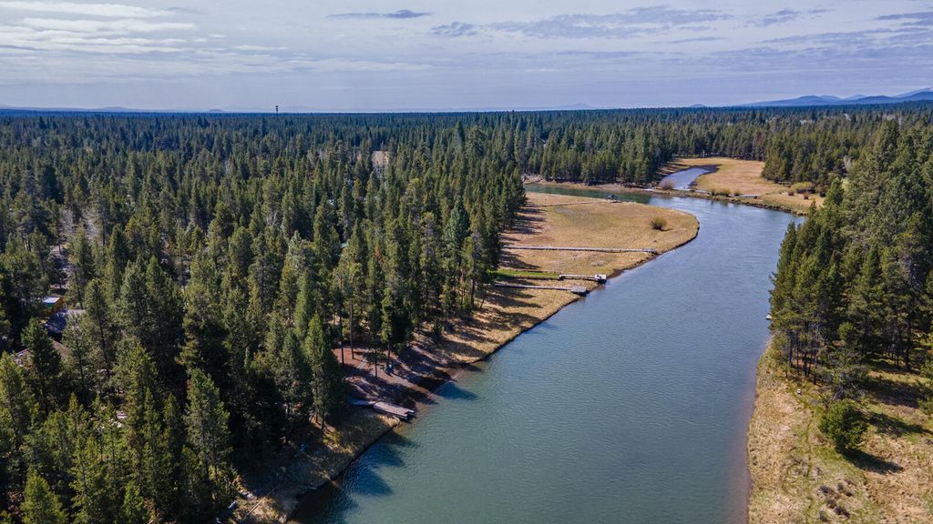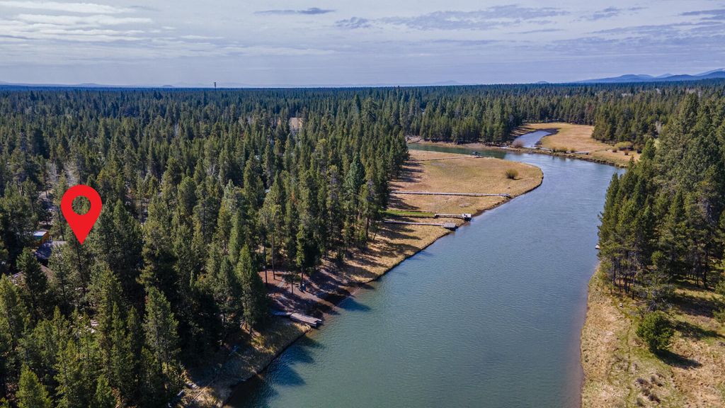 This stunning Big Deschutes riverfront home offers a seamless blend of warmth and architectural design, highlighted by a magnificent living room with Tiger Wood hardwood floors, two-story floor to ceiling windows looking out to the river, vaulted cedar ceilings, and river rock surrounding a high efficiency pellet stove. The thoughtful design ensures breathtaking, panoramic Deschutes views from the kitchen, dining area, living room, and the oversized private primary suite. This 3 bedroom, 2 bath home with over 2400 sq ft of living space offers newer stainless appliances, solid surface countertops with a large glass enclosed dining area to observe the amazing river views. Outside, the hot tub and large wrap around cedar deck provides the ultimate vantage point for the river, overlooking a large, beautifully landscaped yard that leads directly to the water's edge and private floating dock. Completing this exceptional property is an oversized three-car garage.