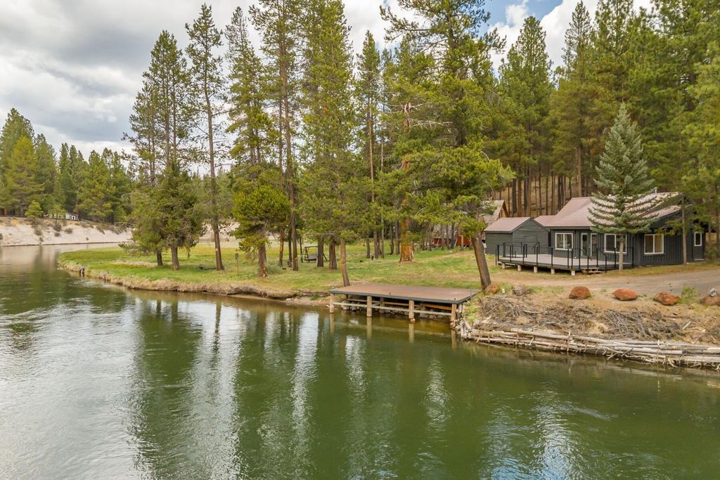 Updated riverfront Cabin in the sought after Haner Park community. 110 beautiful feet of river frontage, on a spacious and private 0.78-acre lot with its own private dock! This gem can be sold mostly furnished and is ready to be used as your next vacation retreat. New large front Trex deck, a large storage shed, and an additional finished building that could be used for extra storage or more living space. Step out your front door to fly fish, or head out on your kayak for a serene river float. Surrounded by great trails for cross country skiing and snowmobiling in the winter! This is your perfect all season vacation cabin!