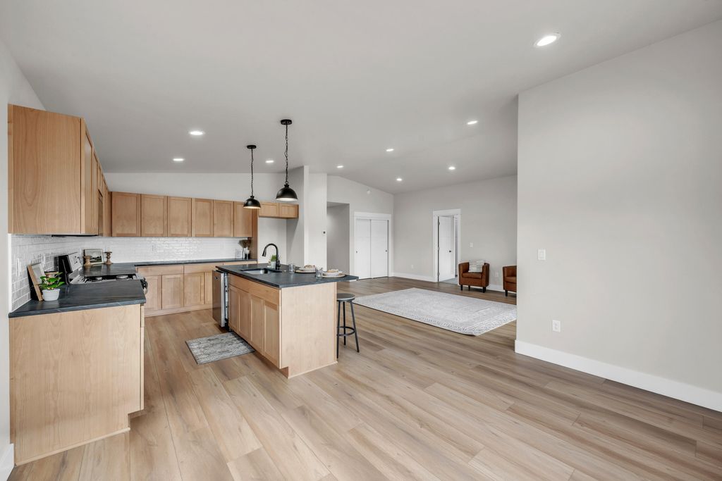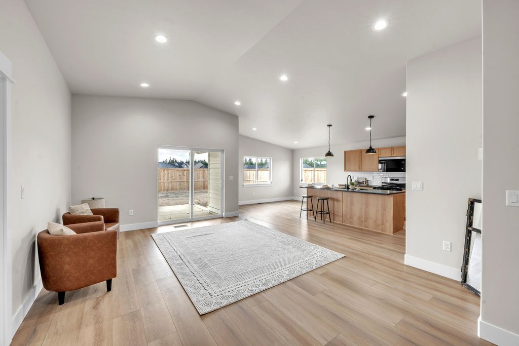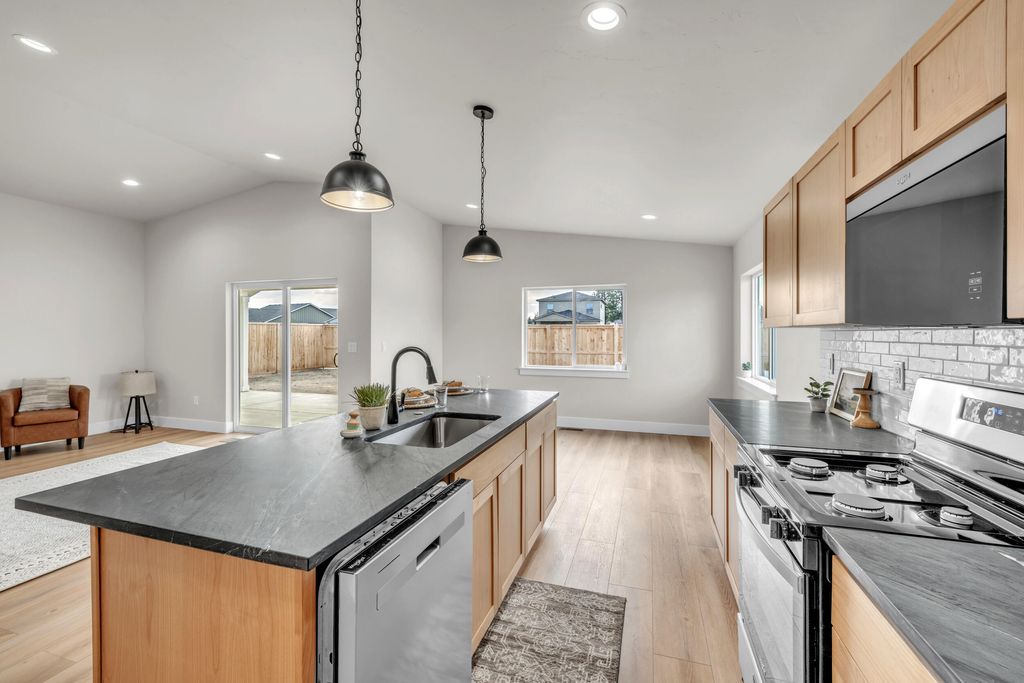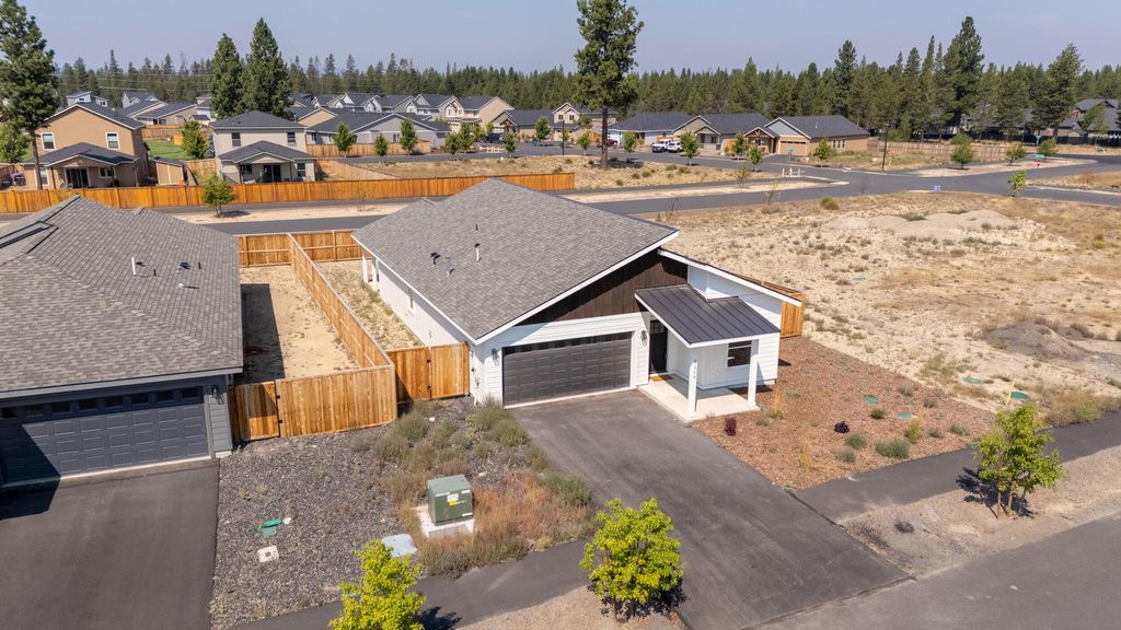 ''Seller to contribute $10,000 towards Buyer closing costs, pre-paid items, rate buy down, or landscaping with an accepted offer.'' This contemporary, NW style home in Reserve in the Pines offers a versatile, 1594 square foot floor plan with 3 bedrooms, 2 full bathrooms plus an office/flex space. This thoughtfully designed home boasts vaulted ceilings with a lot of natural light, a large great room and a functional, sleek kitchen with modern touches. Features of the home include: a large kitchen island with quartz countertops, gas range, subway tile backsplash, soft close cabinets with ample storage, stainless steel appliances, large pantry, LV flooring, sizable laundry room with a barn door and double cabinets. Bathrooms are spacious with quartz counter tops and the primary includes a double vanity and walk-in-closet. The back yard is fully fenced and gated with a concrete covered patio, great for entertaining. This development is close to city center, schools, shopping, healthcare, an