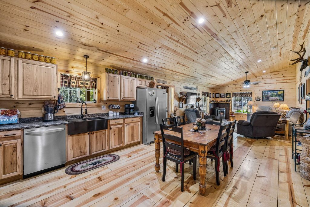 Ever dreamt of a self-sustainable, Little House on the Prairie lifestyle? This charming 2-bedroom, 1.5-bath, 1200 sq ft home offers just that. Adorned with 1x12 hand-finished pine plank floors, pine walls, and elegant hickory cabinets, every inch exudes rustic charm and quality craftsmanship. The home features a double vanity, a cozy pellet stove, and modern comforts with fully fenced surroundings and a spacious garage. With inground sprinklers, 4 greenhouses, serene water features, a chicken coup, and a smokehouse, covered decks with lighting, you can embrace self-sufficiency. Fruit trees dot the abundance of gorgeous landscaping, adding to the home's idyllic setting. If you're ready to live your homesteading dream, this property awaits!