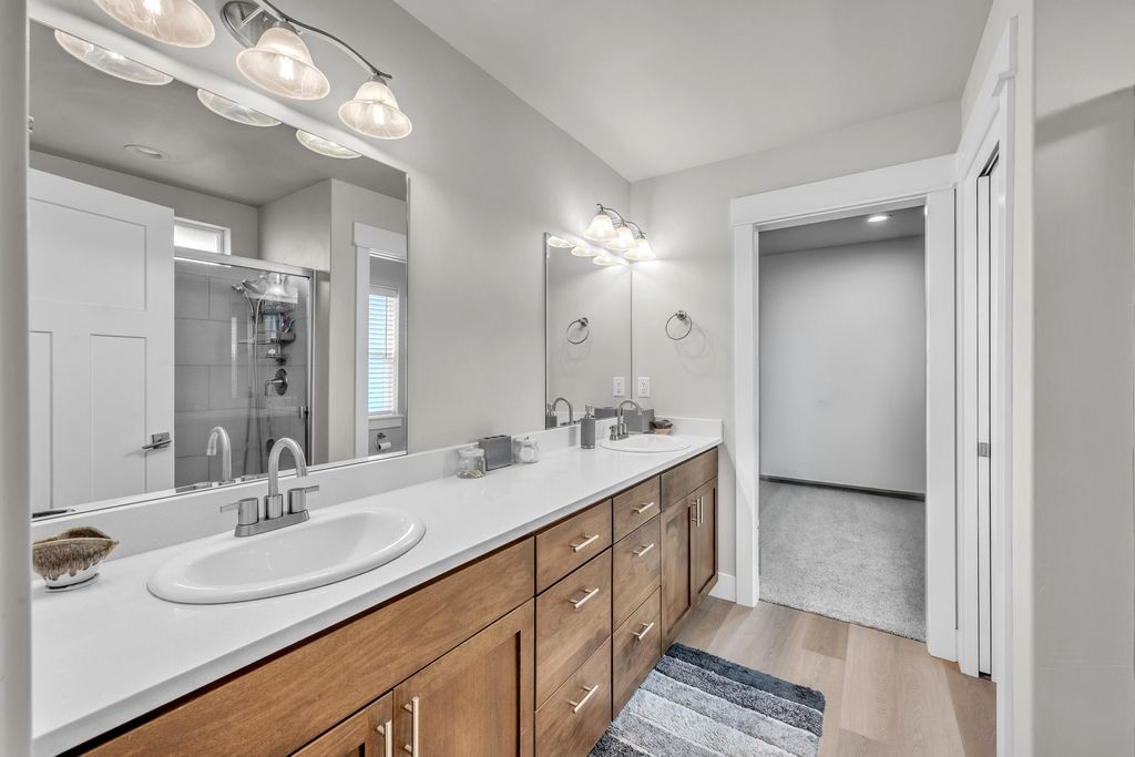 countertops on all surfaces, subway tile backsplashes, large pantry, and modern lighting. Other interior features include a tiled primary shower, large vanity with double sinks, luxury vinyl on the main floors, carpet in bedrooms, large laundry room, and a fantastic covered back patio for entertaining! Located close to many amenities including shopping, dining, Post Office, Library, St. Charles Immediate Care and much more. 15 minutes to Sunriver and 30 minutes to Bend and close to many recreational areas. Come take a look today!