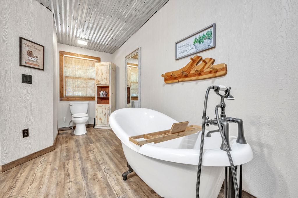 Updates include new laminate flooring, interior paint in the living area, new clawfoot tub installed.