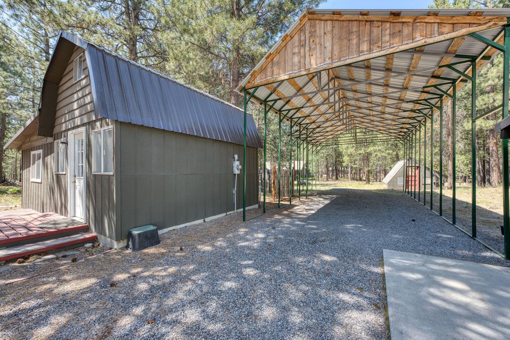 Escape to your very own paradise with this cozy barn-style home nestled on 1.07 acres of serene beauty in Ponderosa Pines. Featuring 3 beds, 2 baths, this two-story gem offers the perfect blend of rustic charm & modern convenience. Step inside to discover a warm and inviting living space, with a certified wood stove for those chilly nights, air conditioning for warmer days. Enjoy the luxury of a large 3-car garage/shop that accommodates your big pickup and toys, behind the main home is a large storage cabin for hobbies and more, along with RV cover parking and a septic hook-up for added convenience. Set on a peaceful corner lot in the desirable Ponderosa Pines, this home is surrounded by nature, offering tranquility and privacy. Don't miss out on this unique opportunity. Make your appointment today to preview this unique property!