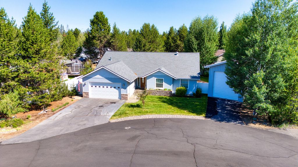 Charming Custom Perry Walters home in La Pine City Limits! Welcome to this rare & beautifully maintained 3 bedroom home w/attached garage & 35 ft Shop perfectly situated within La Pine. Offering exceptional comfort & thoughtful upgrades. The exterior boasts fresh exterior paint w/new porch & handrails. Inside discover an inviting layout. Throughout the home you'll find laminate flooring & w/carpeting in each spacious bedroom. The heart of the home is in the kitchen designed for convenience. Enjoy a new Maytag refrigerator and stove, sparkling backsplash and ample cabinetry with some pull out shelves for easy access. Pantry offers storage. Gas Fireplace in the Living Room will help keep you warm on cold winter nights! All 3 bedrooms are generously sized, featuring large closets. The primary suite offers a walk-in closet outfitted with shelves & private door to covered back deck. Linen closet in hallway & solid wood doors. Nicely landscaped, fenced yard w/path to shop.