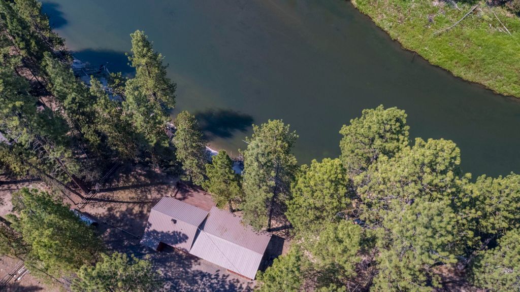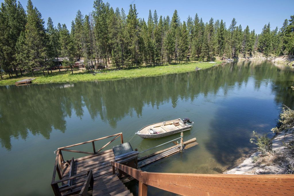 This is a beautiful property with a cozy cabin on the famous Deschutes River. The view from this one-of-a-kind property is breath taking. With over half an acre of river front property and a private boat dock there is lots of space to relax and take in the beautiful scenery. The cabin is strategically situated on a bend of the river and has a great view both directions. Out the sliding glass door is a deck that approaches the bank of the river and facilitates a relaxing place to sit and enjoy your favorite drink. With large ponderosa pines naturally landscaping the property the community has done a great job