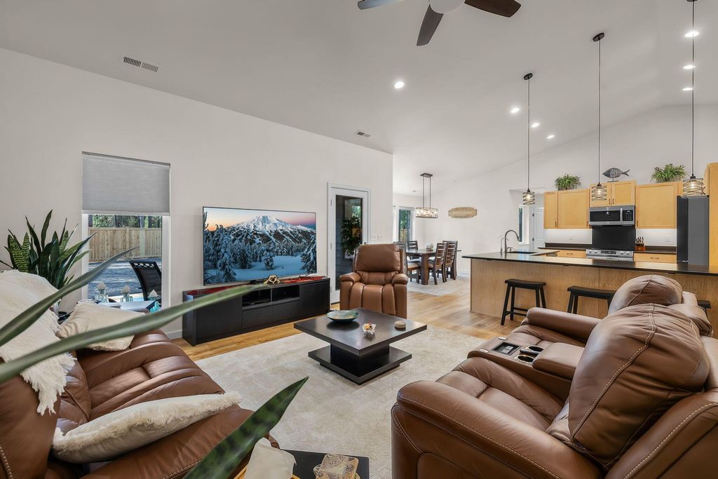 Discover your ideal Oregon retreat in this newly built contemporary PNW home on 1.26 serene, forested acres. This 2,185 sq. ft. single-level residence combines luxury and comfort with vaulted ceilings, wide hallways, and a sunlit great room. The chef's kitchen features stainless steel appliances, custom cabinetry, and an inviting eat-bar"”perfect for entertaining family or guests. The primary suite offers a spa-inspired bath and walk-in shower, while two additional bedrooms and an office provide flexible space. Step outside to a covered patio and private hot tub amidst peaceful forest views. With an attached two-car garage, detached shop, and RV hookup, this home accommodates every lifestyle. Just 30 minutes from Bend and 40 to Mt. Bachelor, it's a turnkey escape for relocation buyers or a sophisticated vacation retreat.