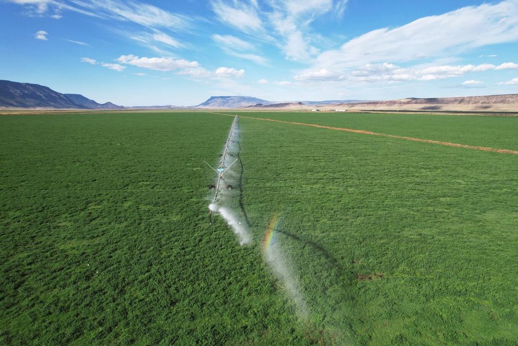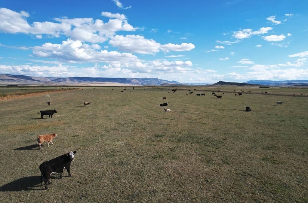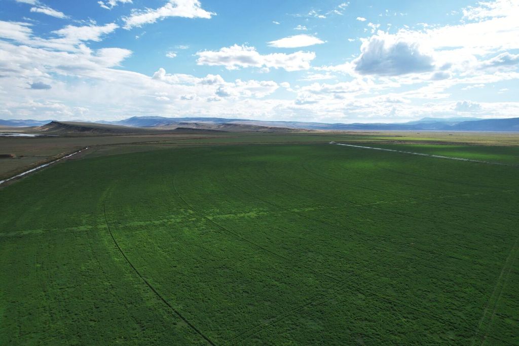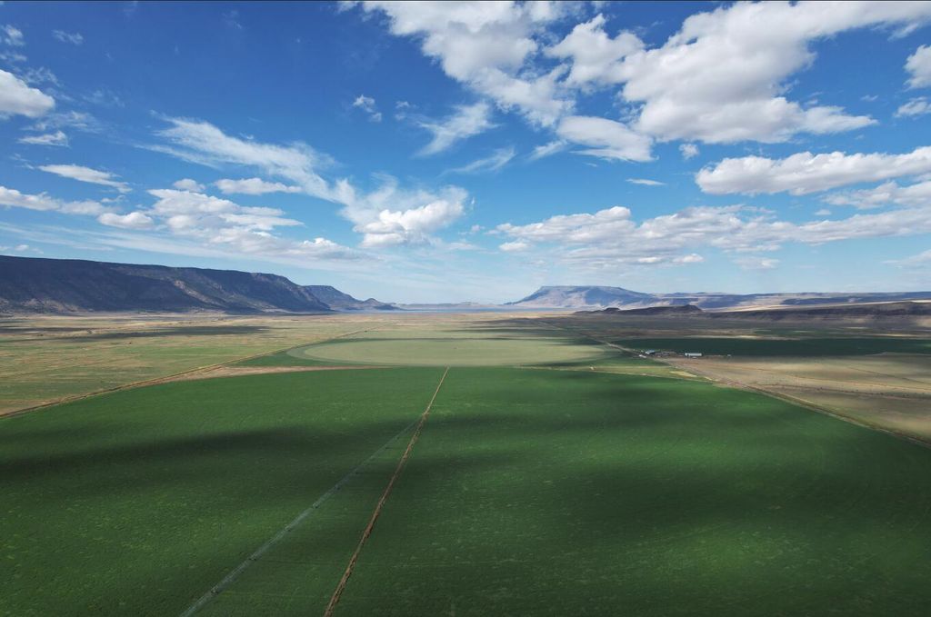 Incredible opportunity to purchase one of the most productive and easy to manage alfalfa hay and cattle ranches you will ever find. 1,437+ acres that is certified organic and almost entirely income producing. Aprox. 1,300 acres of top priority water rights. Around 900 acres in alfalfa under wheel lines and pivots, Around 400 acres in flood irrigated grass. Extensive irrigation canals so that water is always close by, greatly reducing pumping costs. Local water district supplies water and maintains the canals for only around $12 per acre. Electric is one of the least expensive on the whole west coast. The rich black peat soil is so productive that it continually produces 3 to 5 tons of alfalfa per acre with no inputs required. No fertilizers used and it has produced consistantly for 25+ years. The historical records show it is the most productive ranch in the area! Subdividable. Trophy deer/antelope. Buyer to do their due dilignece. Last two pictures are of the adjacent reservoir