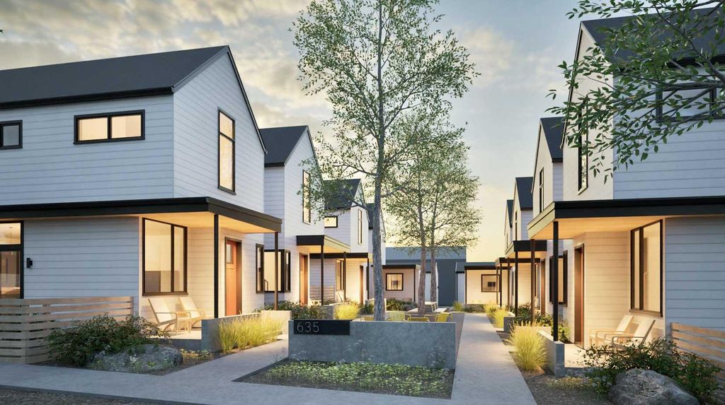 Open House from 12 to 2 this Saturday! Experience the best of Bend living at The Marshall Cottages, a new collection of eight modern homes located in the heart of vibrant Midtown. This light-filled, 936-square-foot Orchard Plan is designed for comfort and style, offering 2 bedrooms and 1.5 baths in a warm and inviting atmosphere. Step inside and feel immediately at ease with a spacious, open-concept living area, with 9-foot ceilings and large windows. The private, enclosed paver patio is a peaceful retreat, while the central courtyard offers a perfect place to gather with neighbors. This thoughtfully designed cottage includes ductless mini-splits for efficient heating and cooling, quartz countertops, luxury vinyl plank flooring, and a detached single-car garage. Move-in ready with all appliances included. This home is your perfect low-maintenance ''basecamp for adventure,'' located just a short stroll from downtown, the Midtown Yacht Club, and Juniper Swim & Fitness Center.