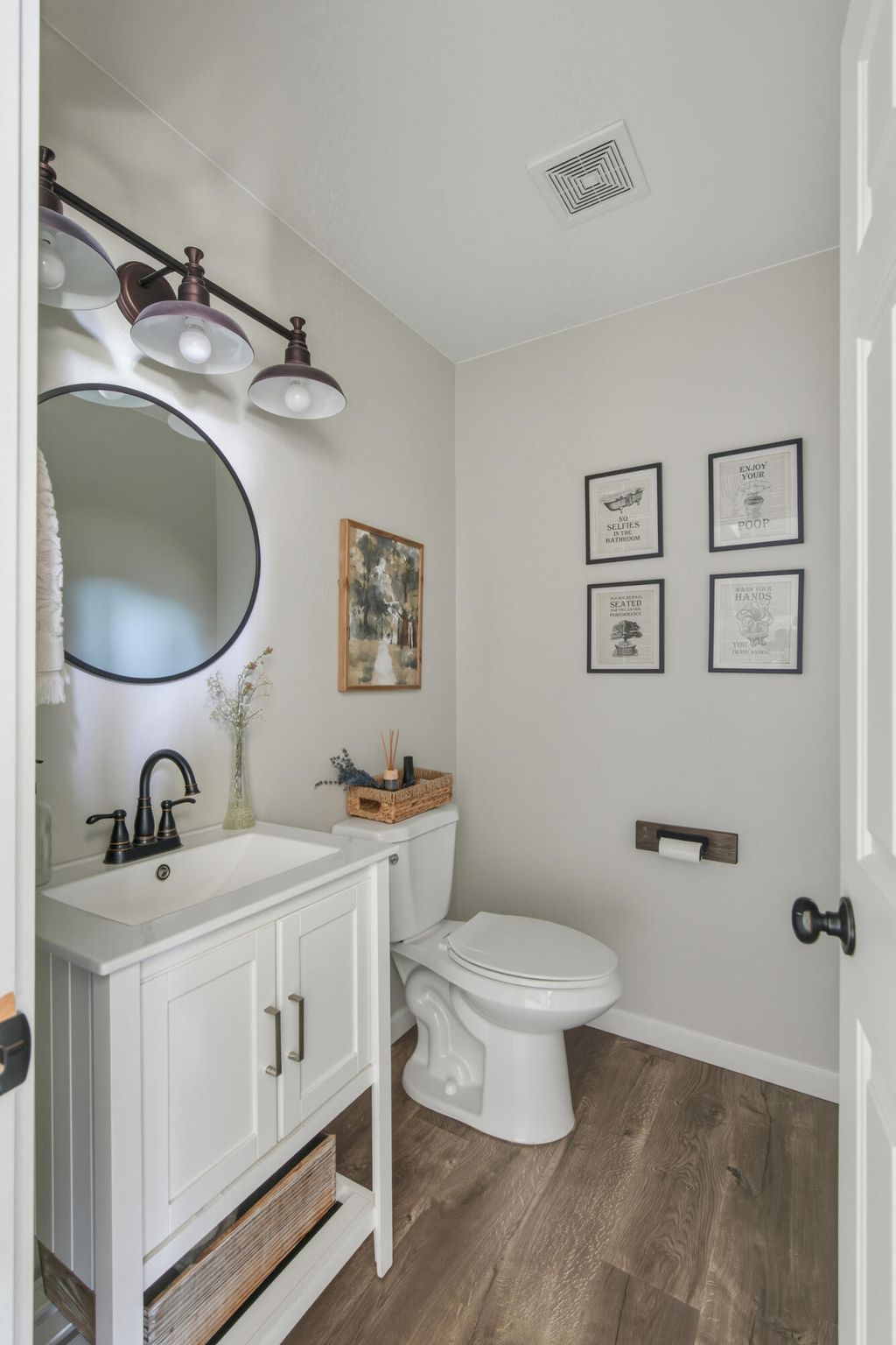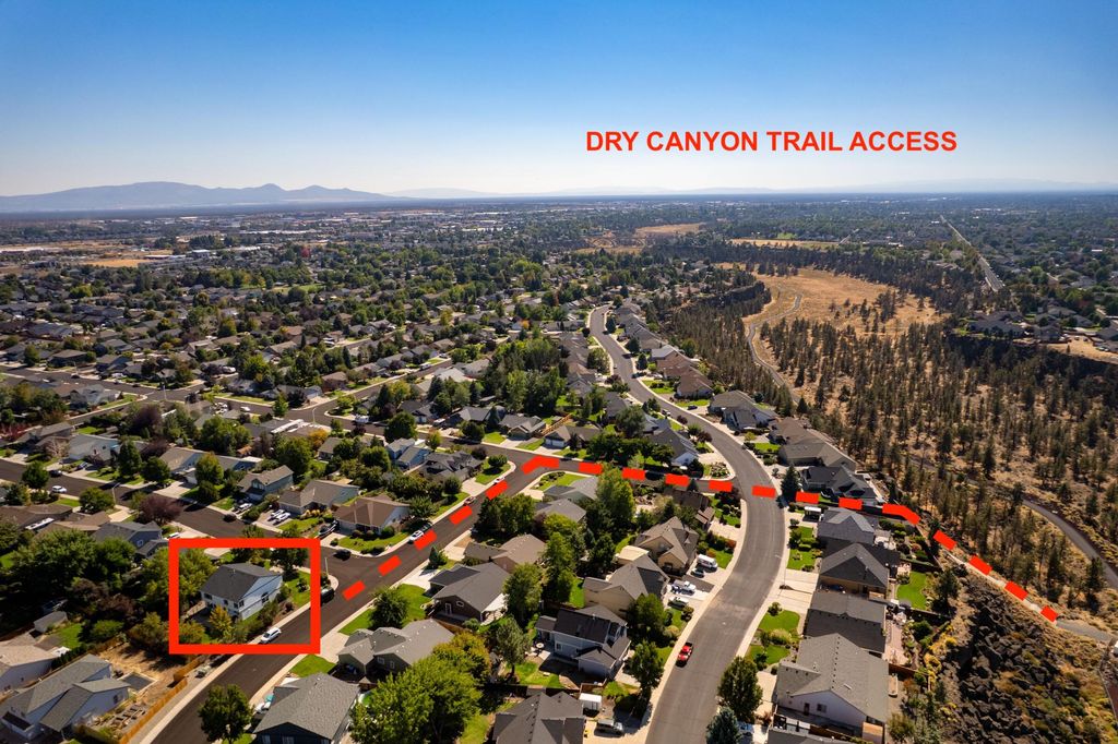 Located just a block from Redmond's Dry Canyon Trail system, this super stylish corner lot home on nearly a quarter-acre offers a blend of luxurious finishes and outdoor living. The spacious floor plan shines with a clean, modern, and bright aesthetic throughout, featuring new interior and exterior paint, a custom tile fireplace, and a renovated kitchen boasting with block counters, a huge island, tile backsplash, and stainless appliances. Major updates include a New HVAC in January 2025 and a New Roof in June 2025. The private backyard is a gardener's paradise with cherry & apple trees, garden beds w/ full drip irrigation system, grapes, berries, a fenced yard, and a relaxing Bullfrog hot tub. Practical amenities include a custom primary closet, an oversized two-car garage, and gated RV parking, all perfectly situated for easy trail access and a superior Central Oregon lifestyle.