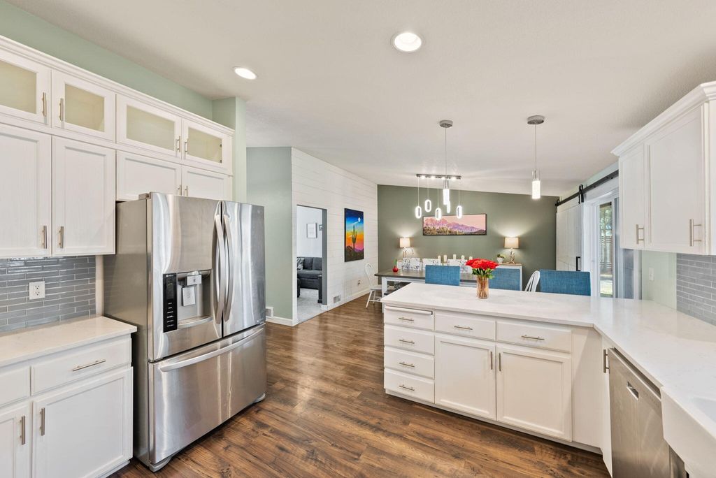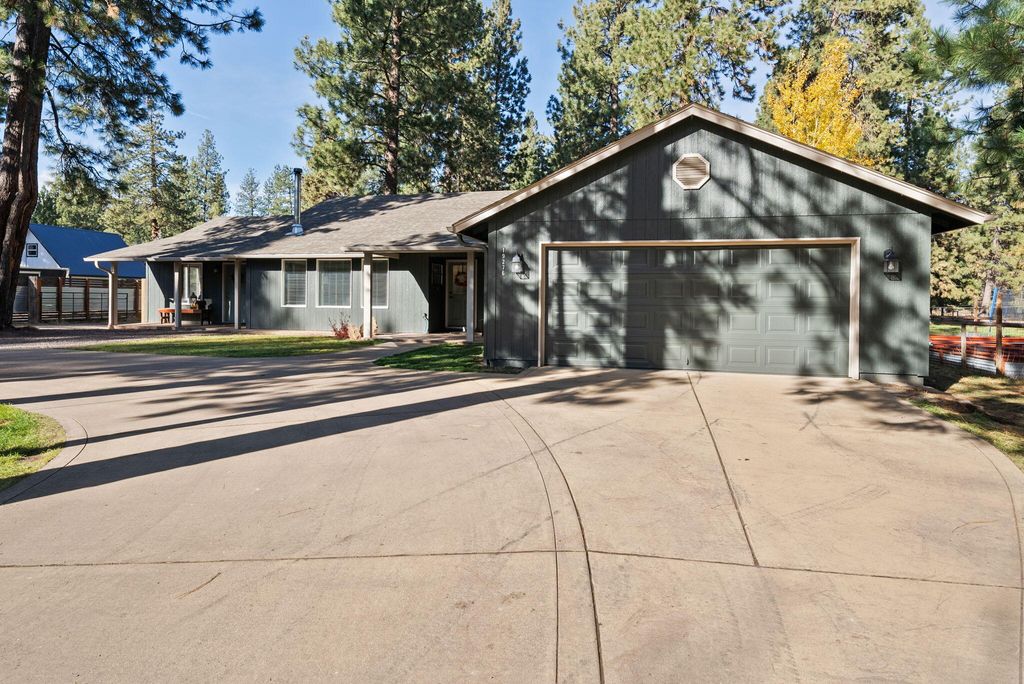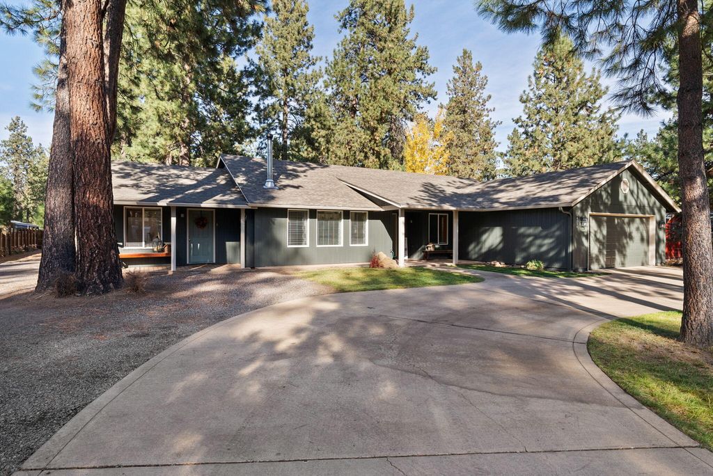 Almost an ACRE in Deschutes River Woods, idyllic single-level home with space to spread out and room for projects! This beautiful 5-bedroom, 3-bath home offers comfort, versatility, and modern style. Nearly every surface has been refreshed since it was built; brand new paint, newer laminate and tile flooring, carpet, rebuilt deck, quartz kitchen countertops, painted cabinets, updated lighting, and touches of shiplap add charm. The vaulted ceilings create an airy feel throughout the open living and dining areas. One bedroom is privately situated on the opposite side of the home with its own entrance and full bath, perfect for guests or an apartment-style suite. A large SHOP with a separate workshop provide endless potential for hobbies, or home business. Space to park your RV, relax in the yard or raise some chickens! Also, a large convenient concrete circle driveway. Enjoy the ideal blend of privacy, function, and modern updates, just minutes from town but outside of city limits!