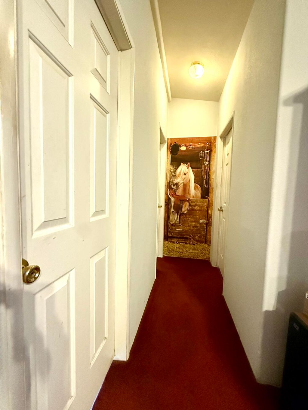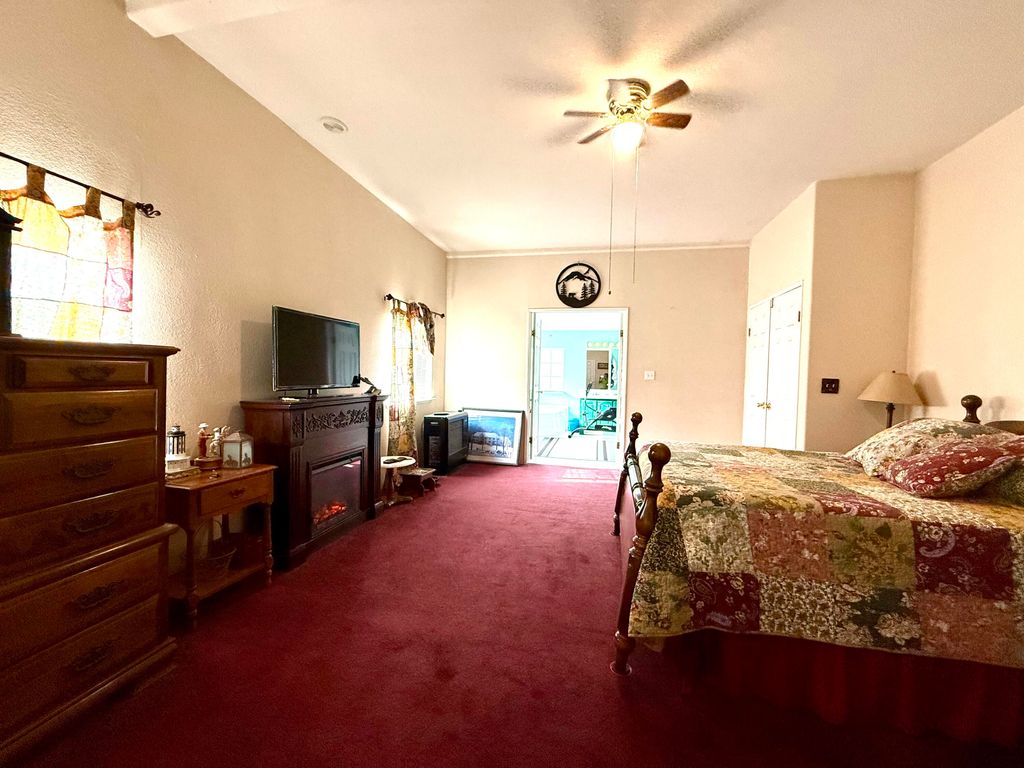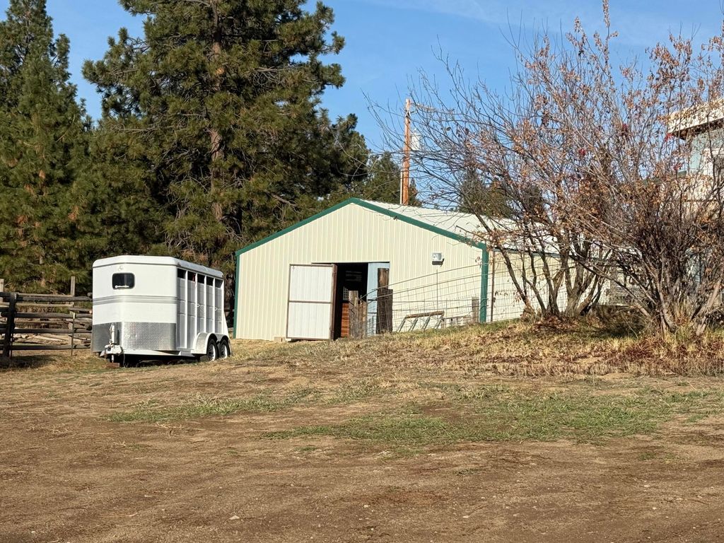 pellet stove as well as a fireplace that currently has an electronic insert. Spacious living room with vaulted ceilings, large formal dining area. The main bedroom features 2 walk-In closets, an on suite with a corner garden tub and a step in shower! There is a covered front porch as well as a large covered deck in the back for those relaxing evenings! 6 Stall Horse Barn with a breeze way, A hay barn, An Outdoor Riding Arena, Round Pen and several corrals. There is a covered 2 car parking area along with a nice sized storage building for your feed, tack or pellets. Asphalt circle