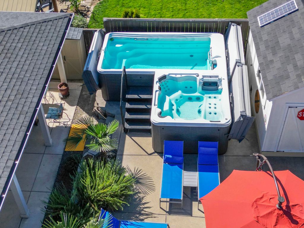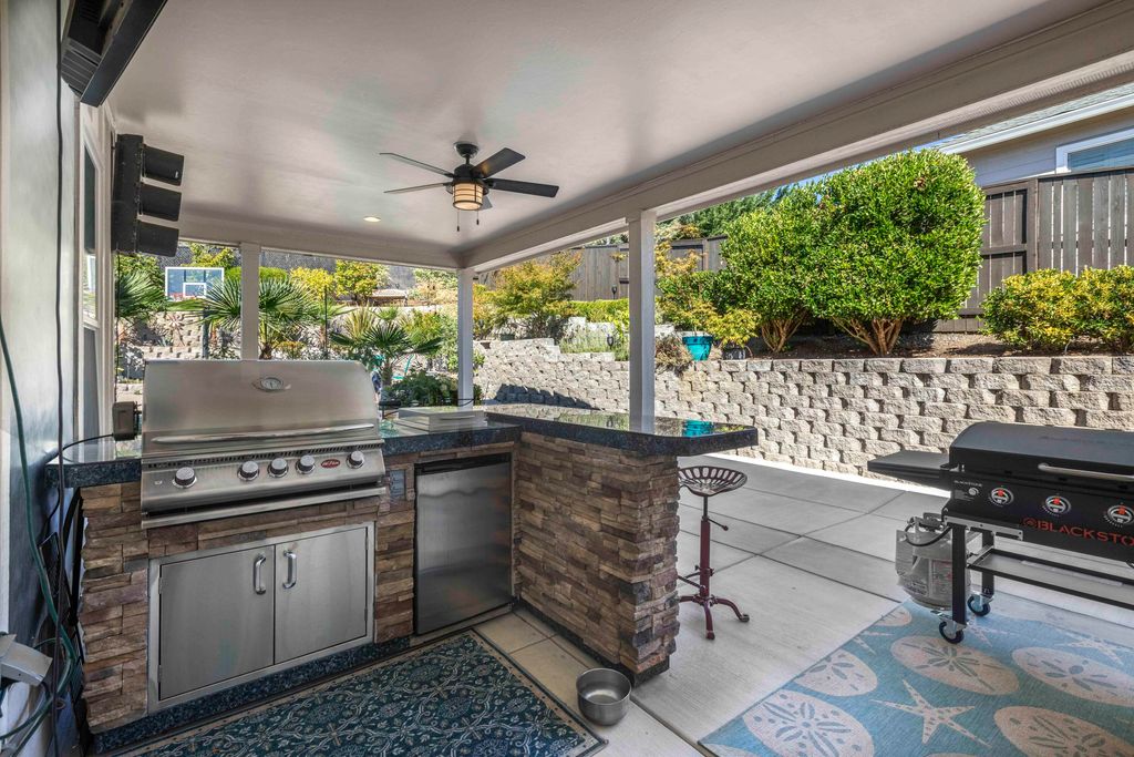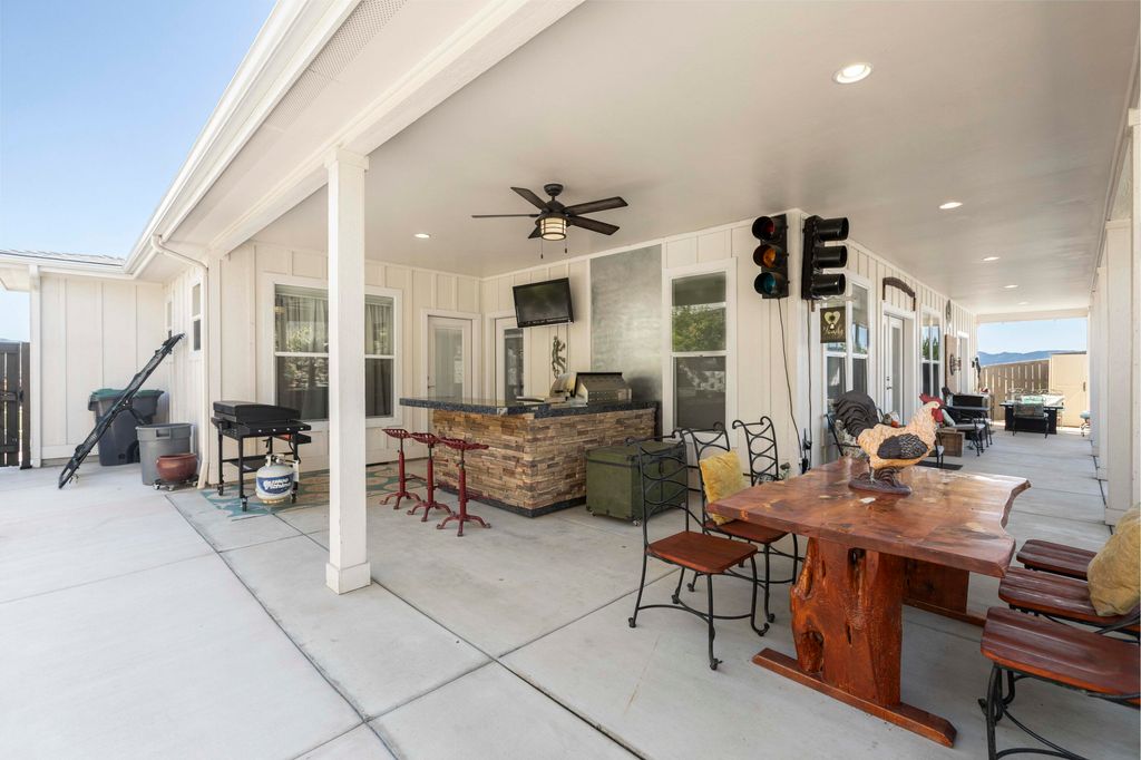 NEW SOLAR SYSTEM Paid for, included on your New Roof. 18.00 /month electric bill. VERY energy efficient. Like NEW Custom home in fabulous Upscale prestigious neighborhood of Medford. Every home is unique, and this one is Gorgeous! Industrial style farmhouse with 4 bedrooms/ plus a huge loft/ 5 bedroom. Fantastic mountain views and serene setting. It's like living in a peaceful sanctuary. Landscaping is all low maintenance and just beautiful. Fun monkey tree palm, fruit trees and palms surround the entertaining backyard. Large modern waterfall comes down the backdrop of lovely yard with firepit. Outdoor kitchen is all granite and a super place for entertaining. Gourmet kitchen with its own coffee bar is an outstanding place to gather around with family and enjoy- Custom floors, lights, and new carpet make this the perfect home. Classy, elegant and comfortable. Vaulted garage and accessible ramp. Easy to show and this is a must see inside home.