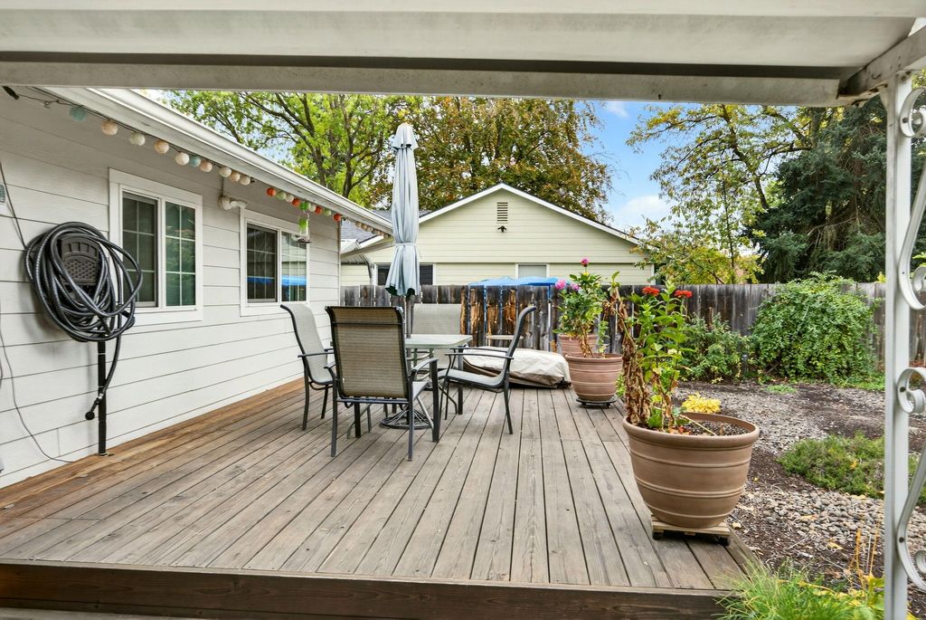 Built in 1961 and thoughtfully updated in 2017 with vinyl windows, laminate flooring, beautiful custom kitchen with HI-MACS counter tops, Pex plumbing & electrical panel. New roof in 2016 .This 3-bedroom, 1.5-bath home blends classic character with modern comfort. New roof was installed in 2016. Inside open floor plan with wood stove insert. enjoy welcoming spaces perfect for everyday living or entertaining. The large back yard is fenced and landscaped, large deck to relax on. Plus there are raised beds for gardening & storage shed. This home is Move-in-Ready!