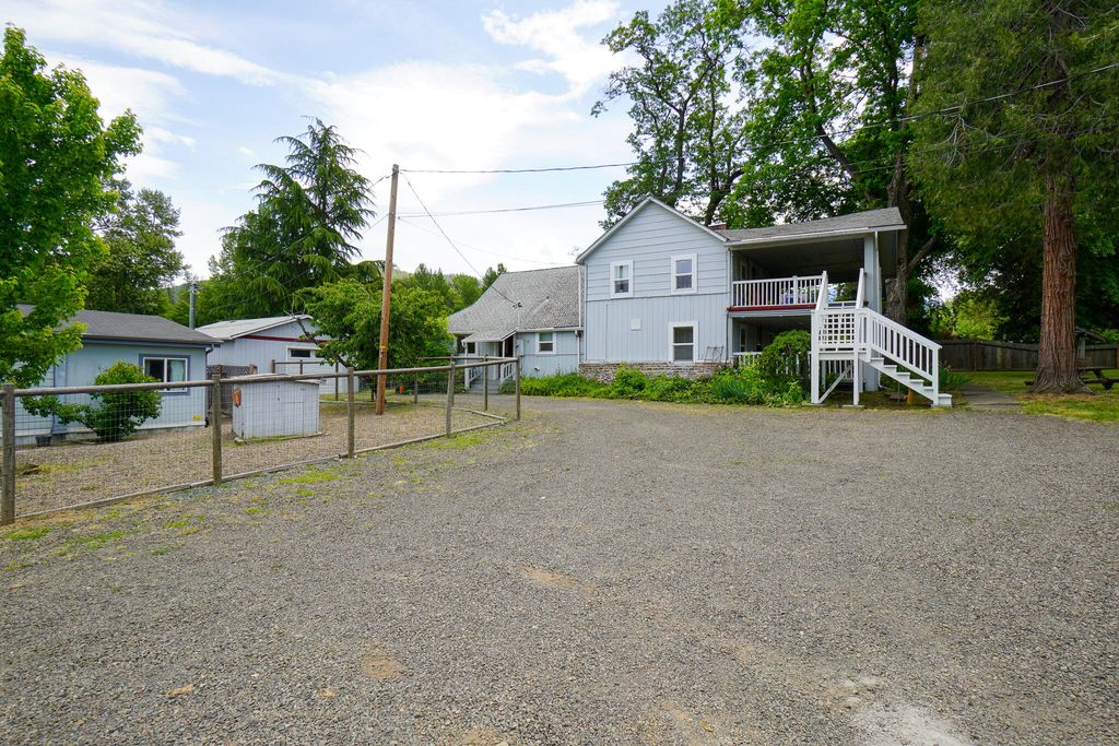Two homes in the beautiful Wagner Creek Valley with creek frontage. Amazing hard to find property. The large main home was built in 1910 .Plantation style home and features 4 bedrooms and 2 1/2 baths with 2247 square feet as per the county. Large covered porch, rustic woodwork touches throughout the home. Updated kitchen and bathrooms. The second home is a 2003 double wide made by Karsten Homes, with 1188 square feet as per the county. 3 bedrooms and 2 baths. Vaulted ceilings, vinyl planking floors, laundry room, large kitchen and master suite. Large pasture in the rear which goes to the creek. Mature fruit trees and room for a garden. The location can't be beat and is only 5 minutes to town. The two homes allow for an extended family situation or rental income. High speed internet available. The second home has a separate address of 7093 Wagner Creek Road