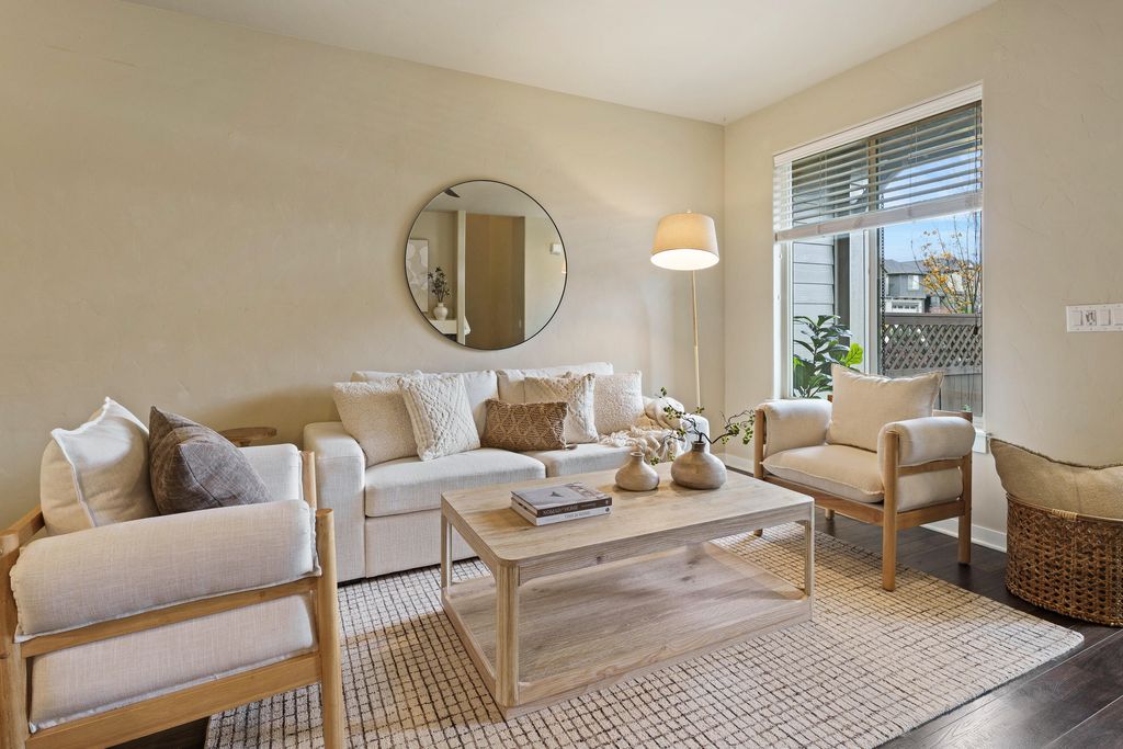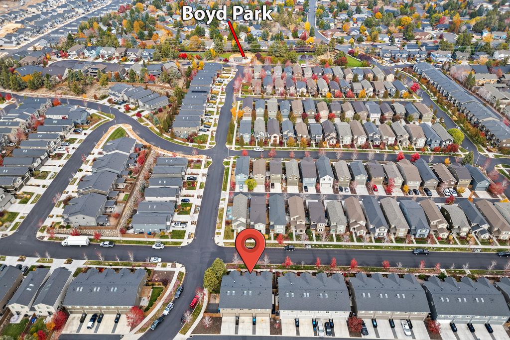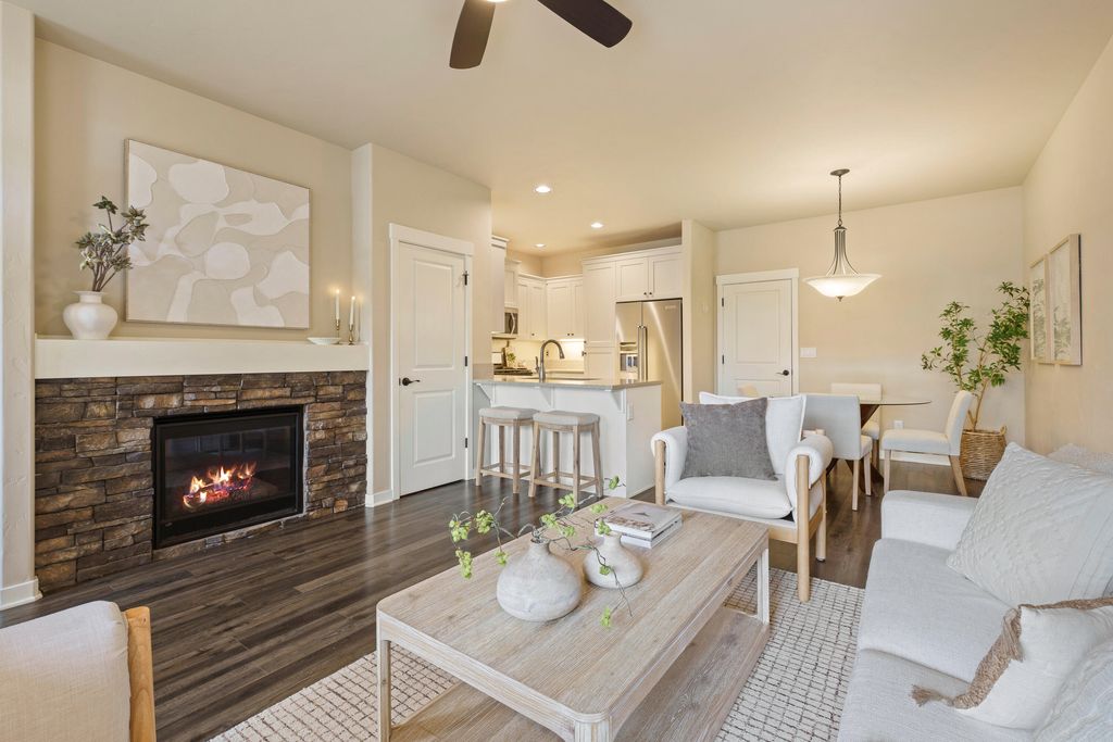 Great Bend Location & Move-In Ready! This well-maintained 3-bedroom, 2.5-bath townhome with loft offers a spacious great-room floor plan featuring new carpet, a cozy gas fireplace, quartz countertops, and stainless steel appliances. All appliances are included, even washer and dryer. Enjoy a private courtyard and an attached 2-car garage. HOA covers front-yard landscaping and alley snow removal, providing a low-maintenance lifestyle perfect for full-time living, a second home, or an investment. Located just three blocks from the community park with playground, open field, and sports courts. Fantastic east-side location close to 10 Barrel Brewing, The Pickleball Zone, and Ballers & Brews food carts. Cute as can be!