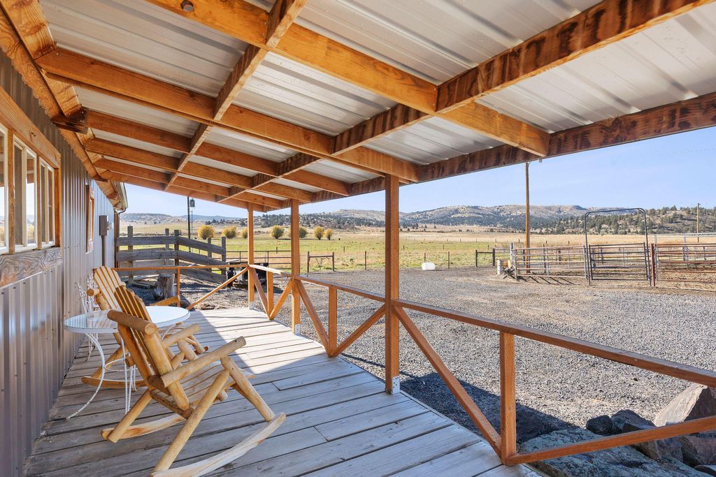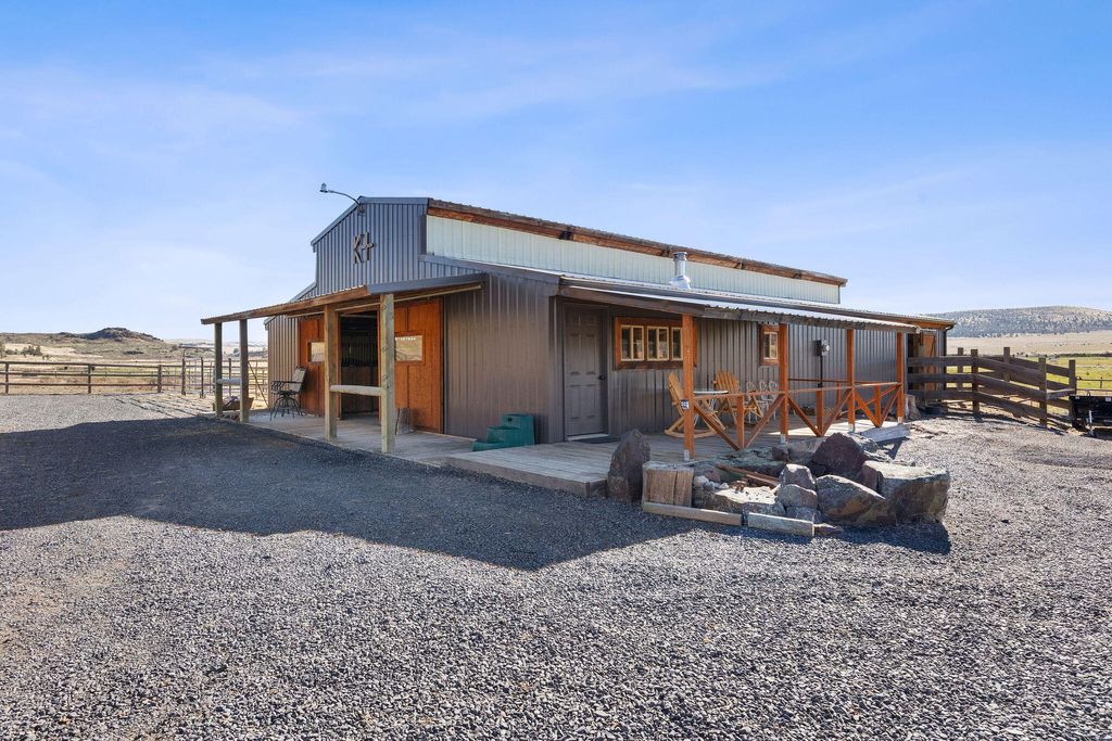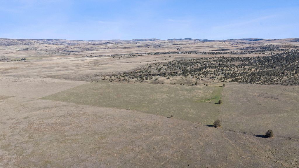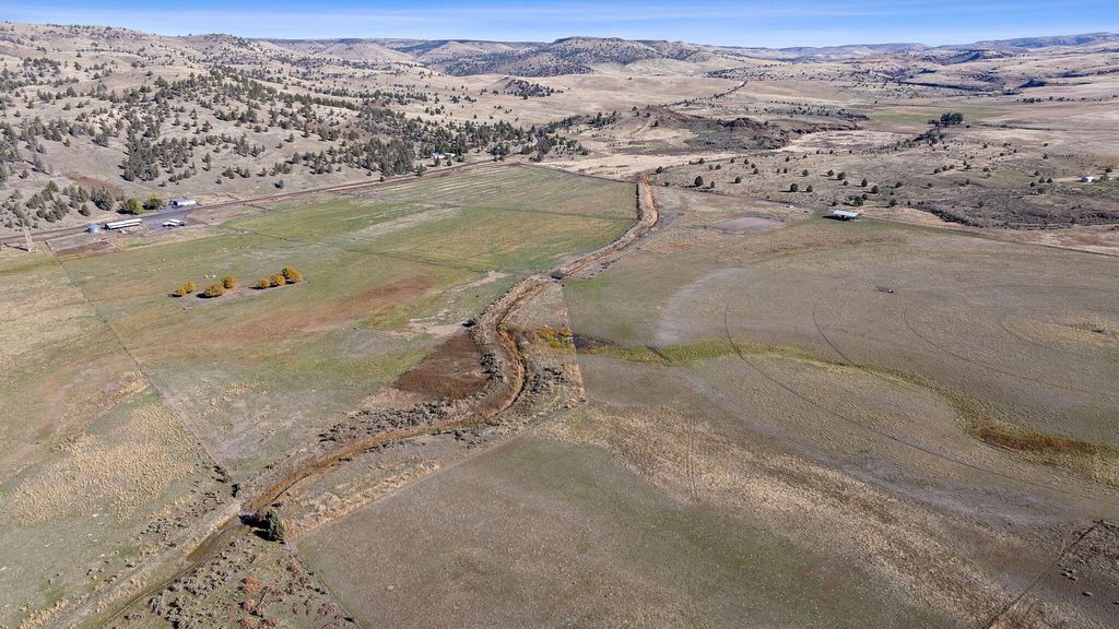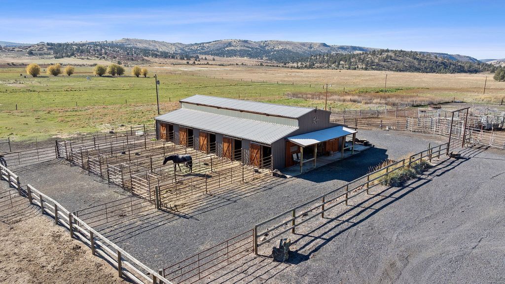 Nestled in Oregon's high desert near Antelope, K Kross Ranch spans 1,555± acres with 252± acres of irrigation rights supplied by wells. Water is delivered by pivot, wheel line, and pod systems for efficient hay and pasture production. The ranch includes a 3-bed, 2-bath home, metal shop, hay shed, and a 6-stall horse barn with bunkhouse. Additional facilities include a livestock barn, cattle working pens, feedlot, corrals, and outdoor arena.
