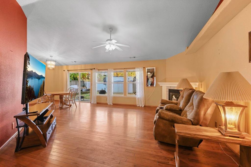 Built in 2002, this beautifully maintained 3-bedroom, 2-bath, 1,627 sq. ft. home in the desirable Central Point East subdivision offers a bright, open floor plan with vaulted ceilings, hardwood floors, and a cozy gas fireplace. The kitchen features abundant storage, granite countertops, and a breakfast nook that opens to the back patio. A spacious dining area flows seamlessly into the living room, perfect for entertaining. The large primary suite boasts vaulted ceilings and a walk-in closet with sliding glass doors. Enjoy outdoor living in the expansive backyard with a covered patio, ideal for gatherings. Additional highlights include a newer roof, solar panels, inground sprinklers, 220 in the garage for those tools and RV parking on a generous 0.19-acre lot. Move-in ready and waiting for you to call it home!