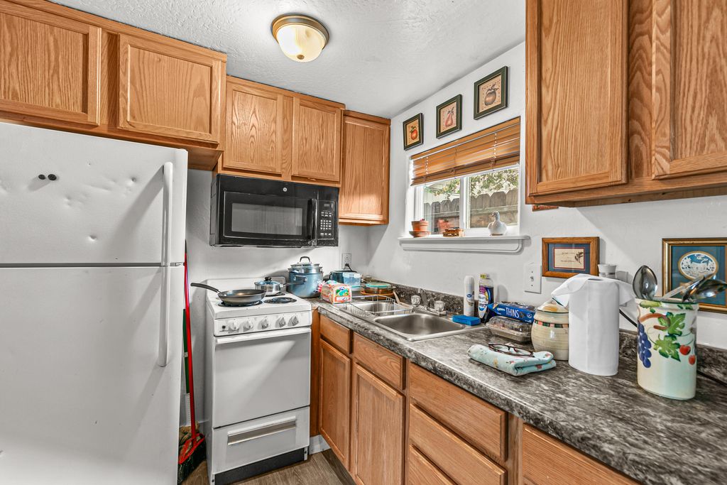 Investor alert! Beautiful home with a detached ADU"”both homes rented with excellent long-term tenants bringing in instant income. The main home features 2 bedrooms, 1 bath, charming arched doorways, a welcoming front porch, open floor plan, a bright kitchen with breakfast bar, and a large laundry room with cabinetry for extra storage. The detached studio ADU offers a mini-split system for heating and cooling, full kitchen, laundry, full bath and alley access parking. Newer roof, updated vinyl windows and new sidewalks add extra value. The garage with alley access is being used as two separate storage spaces for tenants. Both homes are in good condition and well maintained. Tenants wish to stay, providing instant, stable cash flow for the next owner. Strong rental history and low-maintenance setup make this a perfect turnkey investment opportunity. 24-hour notice required for showings"”please be respectful of tenants.