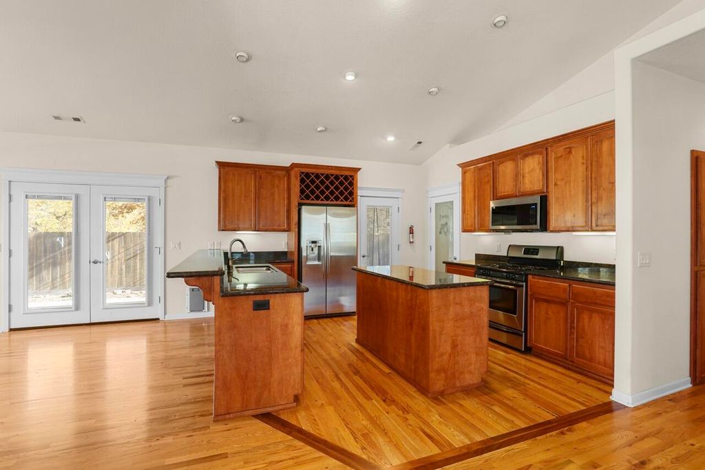 Welcome to country living (Close to town) in beautiful Shady Cove. This three bedroom, two bath ranch style home sits on just over a quarter acre of beautiful landscaped footage, with peaceful surroundings. Inside, you'll find heated hardwood floors, vaulted ceilings, and a cozy back-to-back fireplace that brings warmth to both the living and dining areas. The kitchen features granite counters, a gas range oven, and stainless steel appliances, perfect for everyday cooking or entertaining. The primary suite includes a soaking tub, walk-in shower, and a spacious walk-in closet. Step outside to a fenced backyard with covered extended stamped concrete patio, and ceiling fans perfect for entertaining. The garage is finished, offering extra comfort and function. Fully fenced yard with gated entry. RV parking/Storage. This home blends country charm with modern touches and is ready for you to settle in and enjoy.