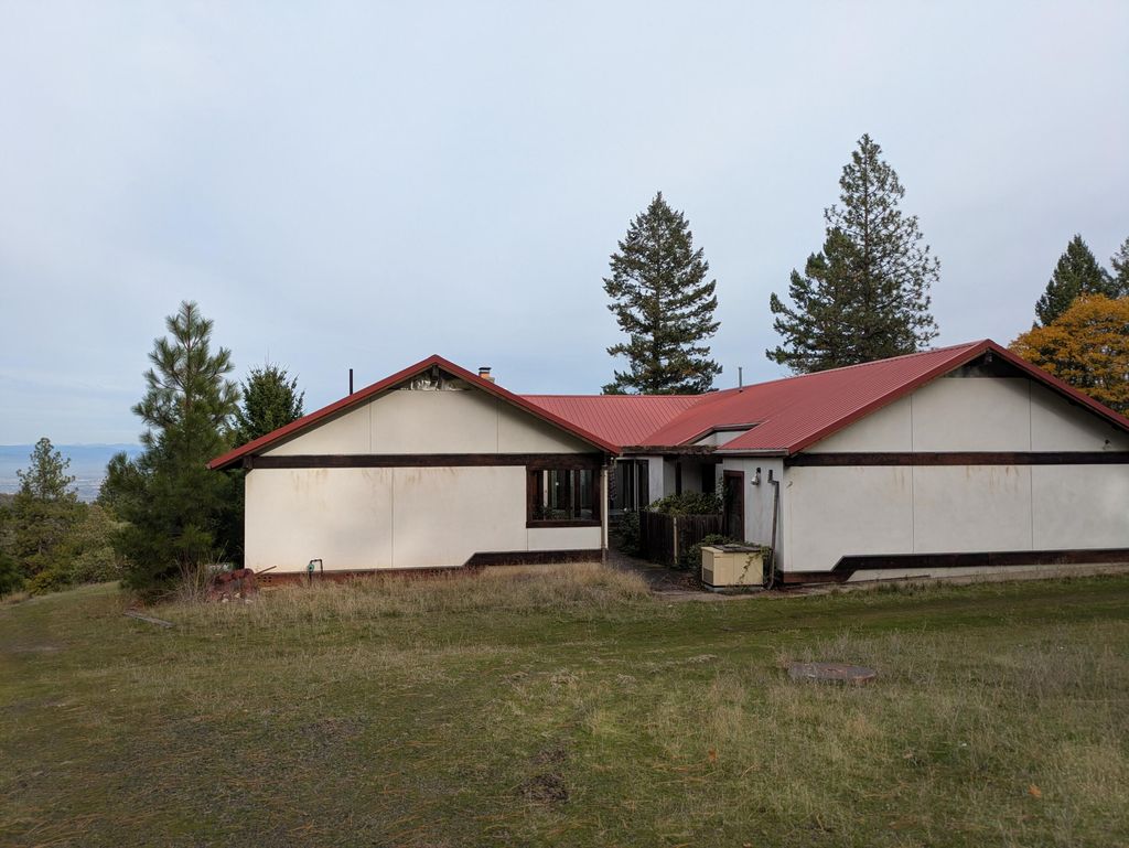 Investor & Visionary Alert! View Estate Awaits Your Transformation. Discover the extraordinary potential! A private, end-of-the-road retreat poised for an inspired renovation in desirable Jacksonville. This custom-built 1984 home has good bones offering a rare opportunity to create the million-dollar-plus luxury home of your dreams with unbeatable panoramic vistas. Wake up to breathtaking views of the Rogue Valley, & an impressive sweep of major Cascade peaks: Mt. McLoughlin, Mt. Thielson, Crater Lake Rim, & Mt. Bachelor. A spacious foundation with over 3,380+ sf is perfect for a high-end remodel. 4 Bed & 3 1/2 Baths, 2 fireplaces, perfect for those who need the space. 2-car garage, a separate 1+ car garage/workshop for projects or extra vehicles, & a carport. Imagine open-concept living, a gourmet chef's kitchen, & a luxury primary suite that capitalizes on the majestic views. Bring your architect &designer to turn this solid structure into an incomparable legacy estate!