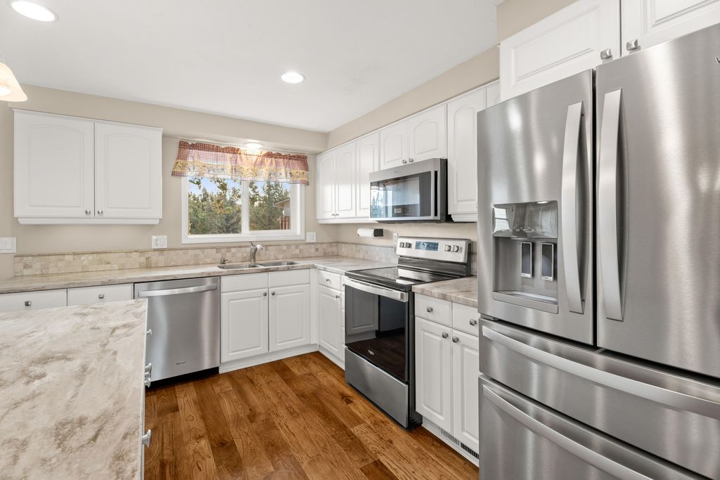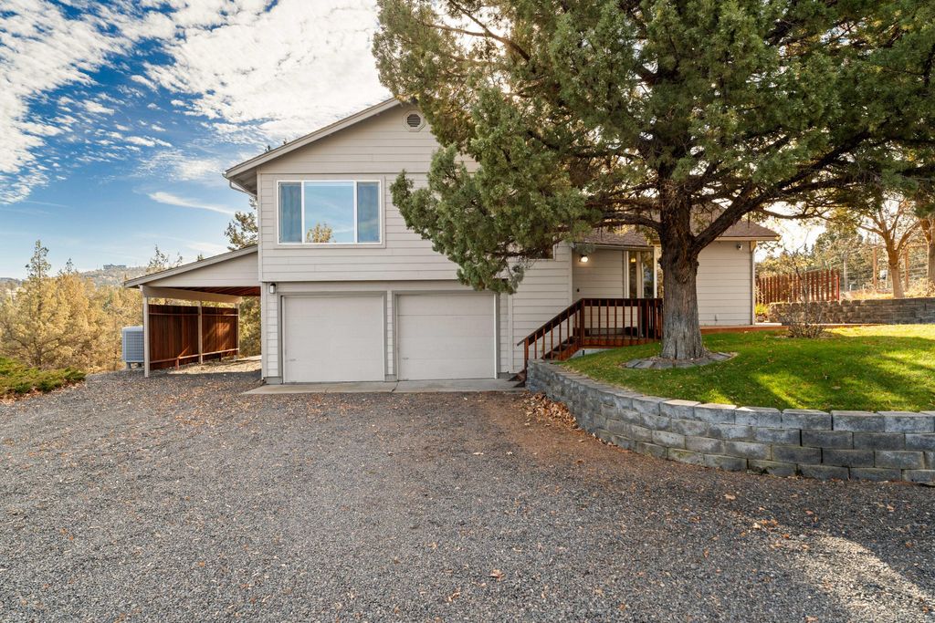 Beautiful home nestled on spacious 2.14 acres with spectacular views of Smith Rock, Mt Jefferson and Mt Hood! The kitchen is a chef's delight with expansive island, updated appliances and lots of cabinets for storage. The great room boasts solid hardwood floors with a wood burning fireplace blending natural beauty with a cozy atmosphere. The upper-level features three bedrooms and a full bathroom with double vanities perfect for family or guests. The lower-level offers a large 4th bedroom with patio access, a bathroom and a generous laundry room. This property features a dedicated garden area that is fully fenced and equipped with hassle-free drip irrigation. Additonally, there are two storage sheds and a 26x39 ft shop with a separate driveway for easy access and extra parking. Don't miss your opportunity to own this move-in ready home with acreage in desirable Cinder Butte Estates subdivision just minutes from Redmond!
