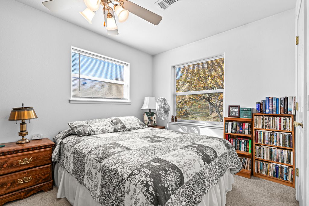 of comfortable living space featuring a convenient main-level primary bedroom, newer