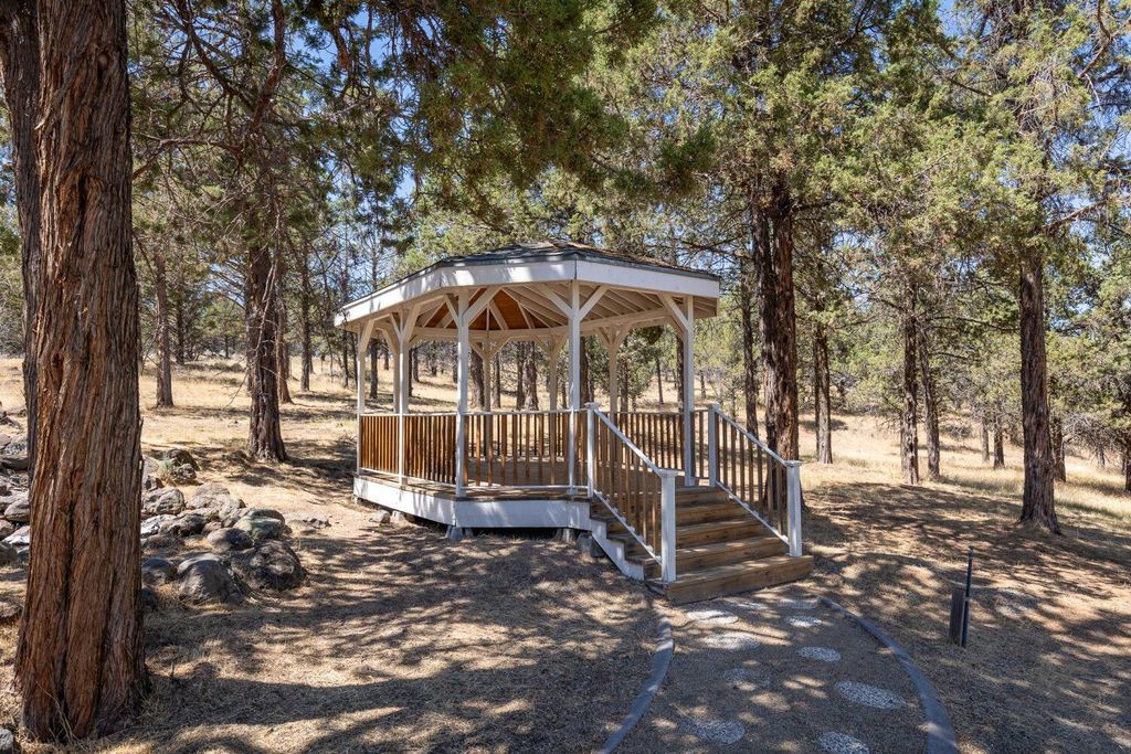 (possible 4th), 2.5 bath home. The property boasts a beautiful gazebo as well as a separate Guest House with kitch-