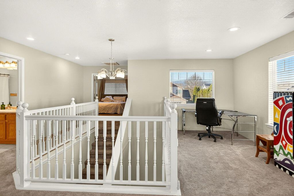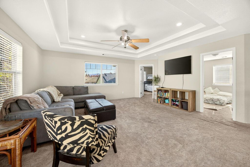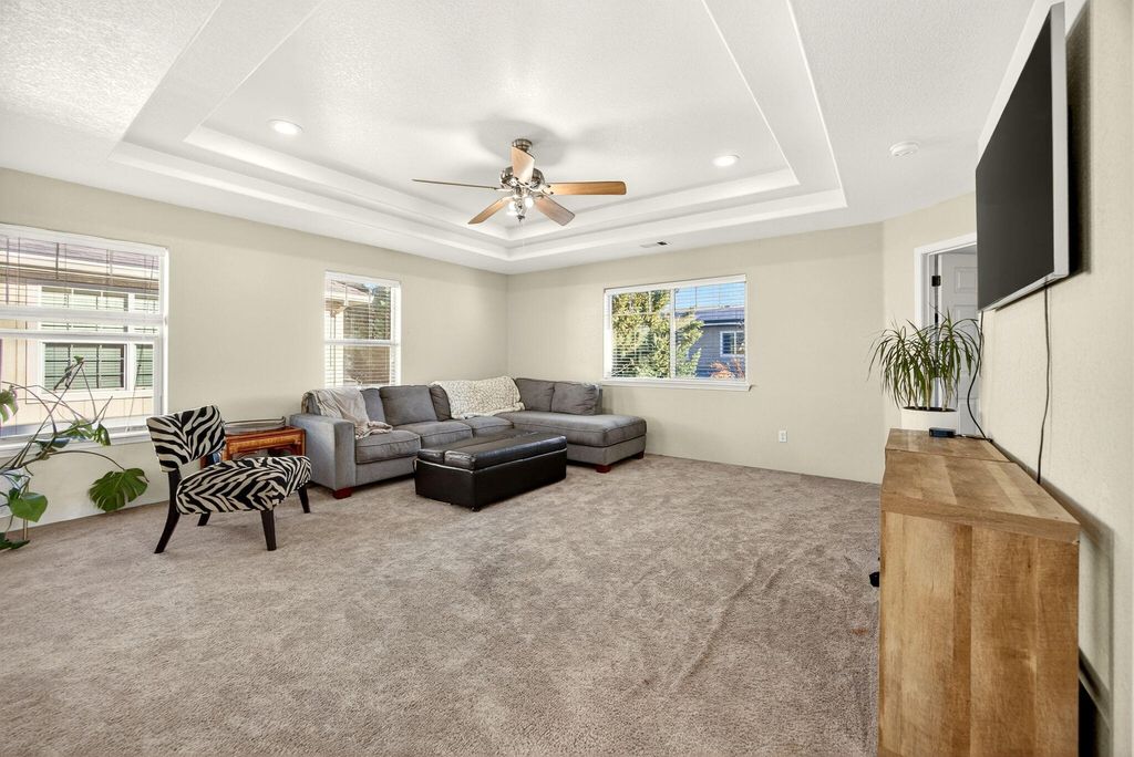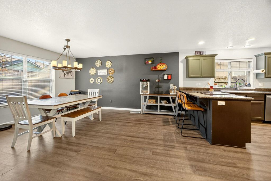 This wonderful 2,266 sq. ft. home offers 3 bedrooms and 2.5 baths. The kitchen features granite slab countertops, a breakfast bar, and ample storage. A gas fireplace adds warmth to the front room, and laminate flooring extends through the kitchen, dining area, laundry room, and entry. The spacious primary bedroom includes coffered ceilings, dual closets, a dual vanity, and a walk-in shower. The second level provides a large bonus/flex space with abundant natural light for a variety of uses. Additional features include a separate indoor laundry room and an attached 2-car garage. The backyard offers a covered patio, hot-tub hookups, and a sprinkler system in both the front and back yards. Located just five miles from historic Jacksonville and within a few short miles of grocery stores, restaurants, hardware, shopping, Rogue Recreation Center, and Logos Charter School.
