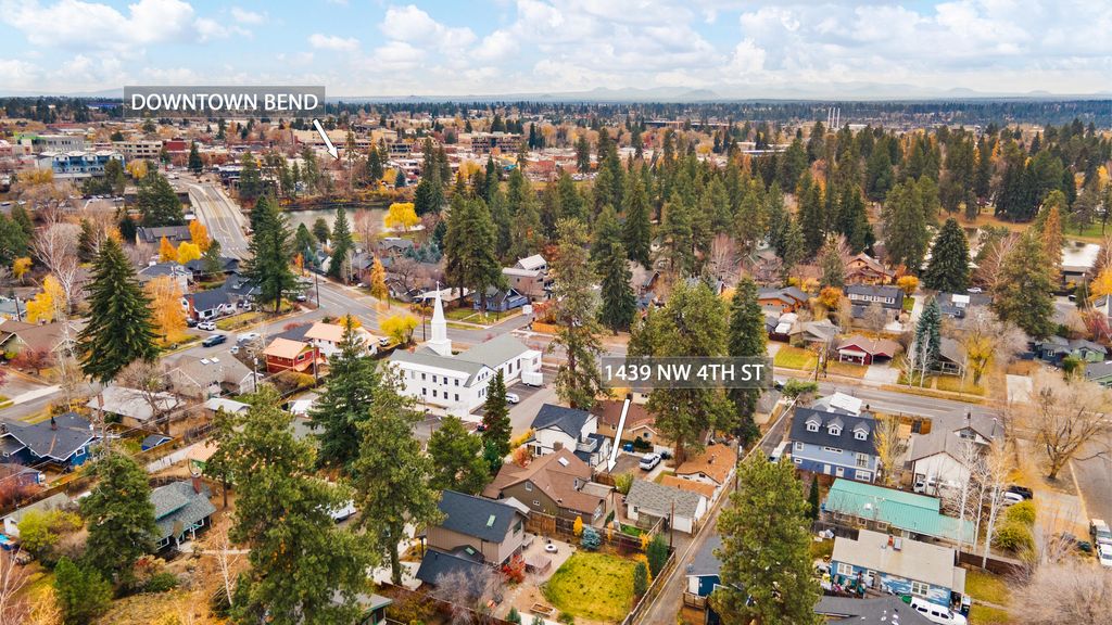 An unparalleled location offering the best of NW Bend living: Step out your front door & walk to Downtown, Drake Park, 1st Street Rapids, & Newport Avenue amenities. Situated on a peaceful cul-de-sac, this timeless Craftsman design offers 3249 SF of living space, charming character & outdoor spaces to enjoy year-round. Light-filled Living Room w/hardwood floors, vaulted ceilings, wood-burn stove & rich wood accents. Kitchen w/granite tile countertops, ample cabinetry & stainless steel appl, opens to a delightful dining area w/access out to back deck for easy entertaining. Main level Primary Suite w/walk-in closet, separate vanities, soaking tub & tile shower. 2nd BR also on main. Upstairs: loft flex space + 3rd BR/2nd BA. Finished basement w/separate exterior access, 1 BR/1BA, living area, kitchenette & laundry. Fully-fenced backyard features deck, pergola, patio & yard space. Detached 1-car garage + full shop. A hidden treasure in one of Bend's most sought-after, walkable neighborhoods.
