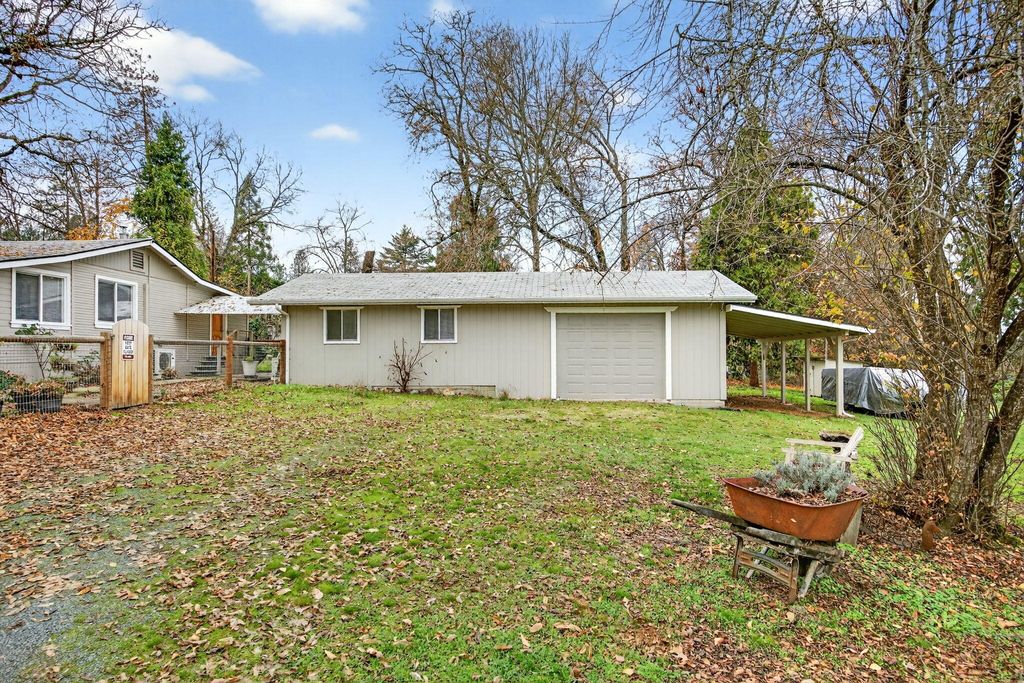 Updated and move-in ready! Tucked back off the street, this property offers two separate living spaces - the main 2-bedroom, 1-bath home plus a detached 800 sq ft garage with a finished bonus room, pantry and a permitted bathroom - perfect for guests, hobbies, or rental use. The .32-acre property includes a newer roof, deck, flooring, and septic, along with mini-splits in both buildings. Inside the main home, you'll enjoy a cozy wood stove in the living room and two office/reading nooks for added flexibility. With fenced front and back yards, RV parking, plenty of outdoor space, and easy access to I-5, this property is full of opportunity.