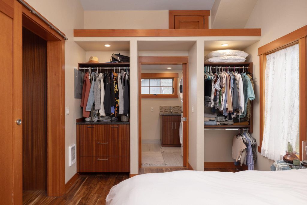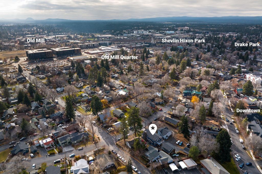 Stunning Craftsman style home in the heart of downtown Bend, blending timeless architecture with elevated modern living. This 3-bedroom, 2.5-bath residence offers premium finishes, engineered hardwood flooring, custom fir trim & doors, and warm living space centered around a wood-burning fireplace. The gourmet kitchen features mahogany cabinetry, JennAir range with downdraft, wall oven & instant hot water. Thoughtfully designed for both comfort & functionality. Upstairs includes a versatile family lounge, linen storage, & serene primary suite with private deck, dual vanities, and tiled glass shower. Comfort features include gas furnace, heat pump, central AC, tankless Navien heater, and ceiling fans throughout. Beautifully designed ADU adds an additional bedroom, bath, and mini-split system. Outside, enjoy a covered front porch, two-car garage, and mature landscaping with fruit bearing trees. A rare blend of exceptional craftsmanship & comfort steps from all downtown has to offer.