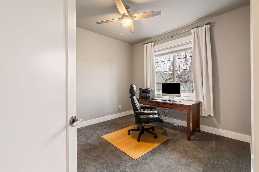 Rare, newer SINGLE LEVEL home backing to golf course in NW Bend for under $1M! This Pahlisch built home is in excellent condition, and offers an abundance of privacy to the rear of the home due to it's relatively obscure location on the golf course. A 3 car garage welcomes you before entering the expansive Great room with vaulted ceilings. A gas FP with stack stone will keep the winter chill at bay, while you prepare a sumptuous meal in the large kitchen surrounded by top of the line Kitchen Aid stainless steel appliances and Quartz kitchen countertops. The foyer is large and inviting, with high architectural ceilings, and the main living area consist of laminate flooring for both look and longevity. Mstr bath offers quartz countertops, a soaking tub and large walk in shower and walk in closet. A small private office w/ sliding barn door puts the finishing touch on this beautiful single level home located in a premier NW Bend neighborhood. WA/DR/ & Kitchen Aid refrigerator included!