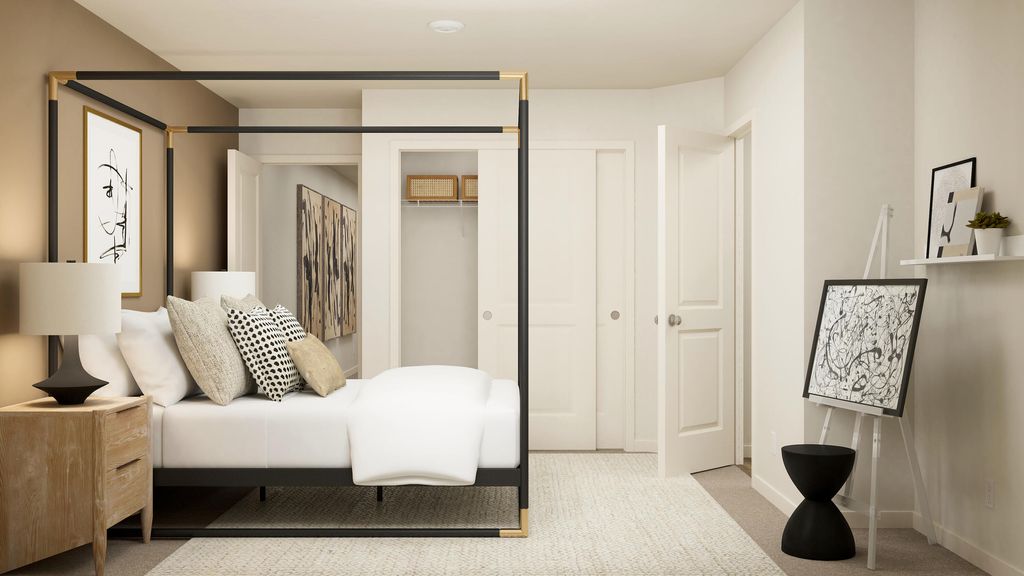 New construction home is located at Reserve in the Pines, surrounded by year-round outdoor recreation with open spaces and adjacent to a community trail. The Auburn plan offers an open-concept main floor where the kitchen, dining nook, and great room flow seamlessly to the patio. Upstairs, you'll find four rooms, including a private primary suite tucked into the back corner with an en-suite bath, double vanity and walk-in closet. Two bedrooms share a jack-and-jill style bath, and the third bedroom has an en-suite bath. Interior highlights include quartz counters, shaker-style cabinets, and LVP flooring in the kitchen and baths. This home also includes central AC, fridge, washer and dryer, xeriscaped front yard with drip irrigation system, and blinds"”all at no extra cost! Homesite 96. Est. completion April 2026. Rendering is artist conception only. Photos are of a similar home, features and finishes will vary. Closing costs incentive available when financing with preferred lender.