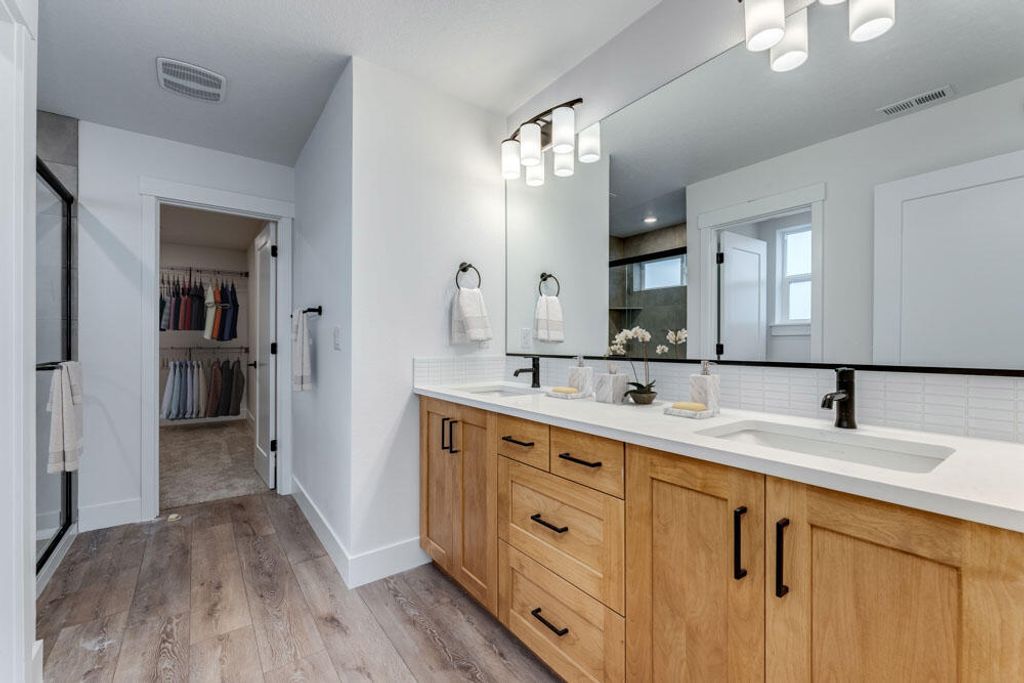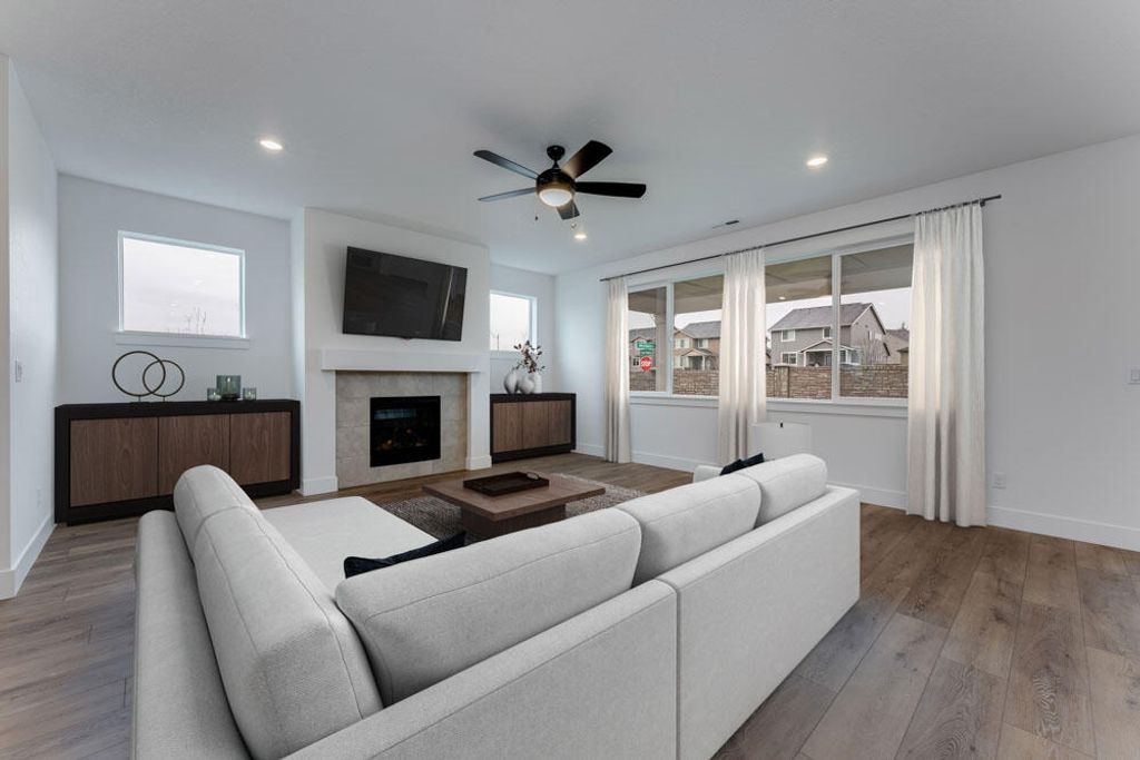 This charming CANTON floor plan by Award winning Pahlisch Homes on lot #22 spans a spacious 2,500 SF and features a thoughtful two-story design. Meridian, a community of single-family homes, with the allure of nearby conveniences such as shopping & Pine Nursery Park. Tasteful designer selections are showcased throughout, adding style & elevated detail to every space. This home includes 3 comfortable bedrooms and 2.5 baths, which include a luxurious primary suite. The main level is enhanced by a cozy fireplace, elegant quartz countertops, and durable luxury vinyl flooring, creating a welcoming environment. Offering a versatile flex room ideal for an office or play area, with a large rec room upstairs providing ample space for entertainment or relaxation. Step outside onto the covered front porch or covered back patio where you can enjoy the serenity of the outdoors in any weather. AC and tankless water heater are included for year round comfort. Photos are virtually staged