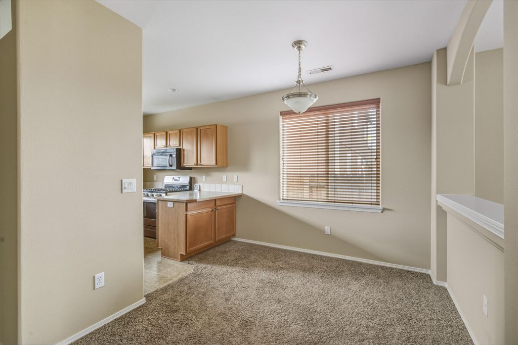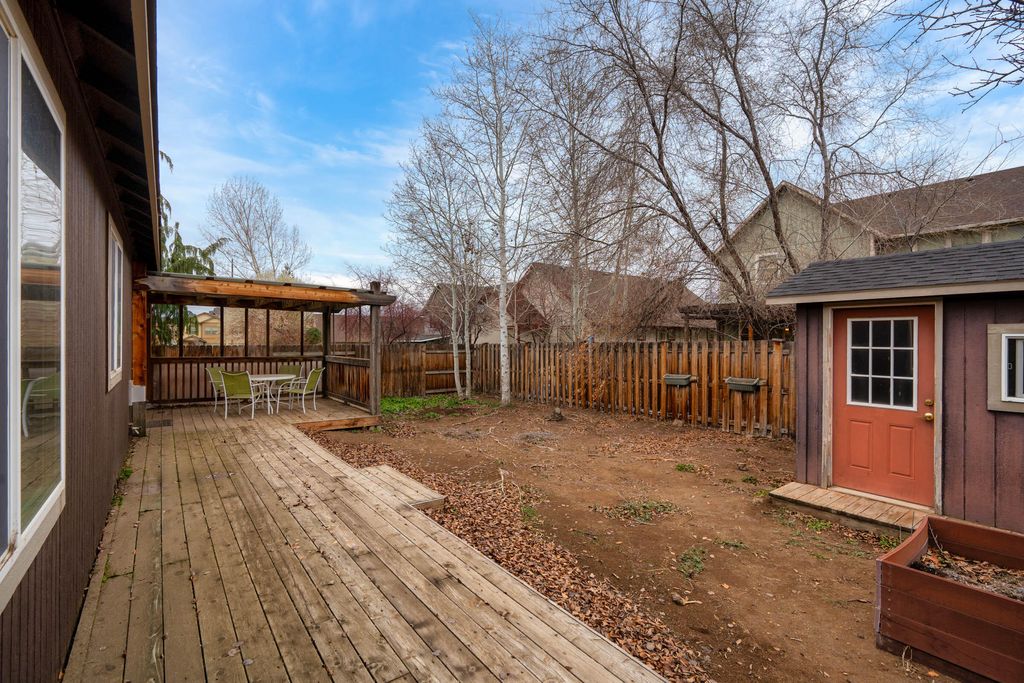 Tucked within a quiet cul-de-sac, this charming single-level home welcomes you with a sweet picket fence, a country garden, freshly painted exterior, and a covered front porch perfect for morning coffee. Inside, the thoughtful layout features fresh paint, cozy gas fireplace, bright living spaces, and a functional kitchen with a gas range and included appliances. The primary suite offers double vanity and ample storage, while the utility room adds everyday convenience. Step out back into a covered deck overlooking a fully fenced yard with a darling garden shed"”ideal for hobbies or storage. Sprinkler system with timer in front and rear. With forced-air gas heat, a heat pump for year-round comfort, and an easy-care 0.14-acre lot, this 3-bedroom, 2-bath home combines simplicity, warmth, and location in one inviting package.