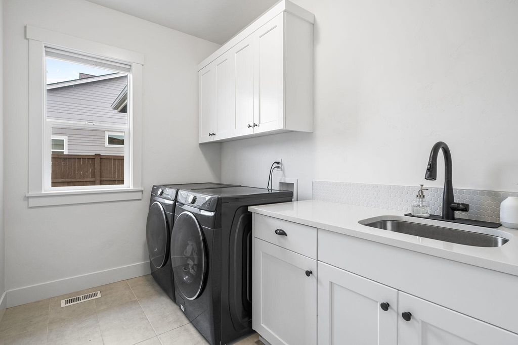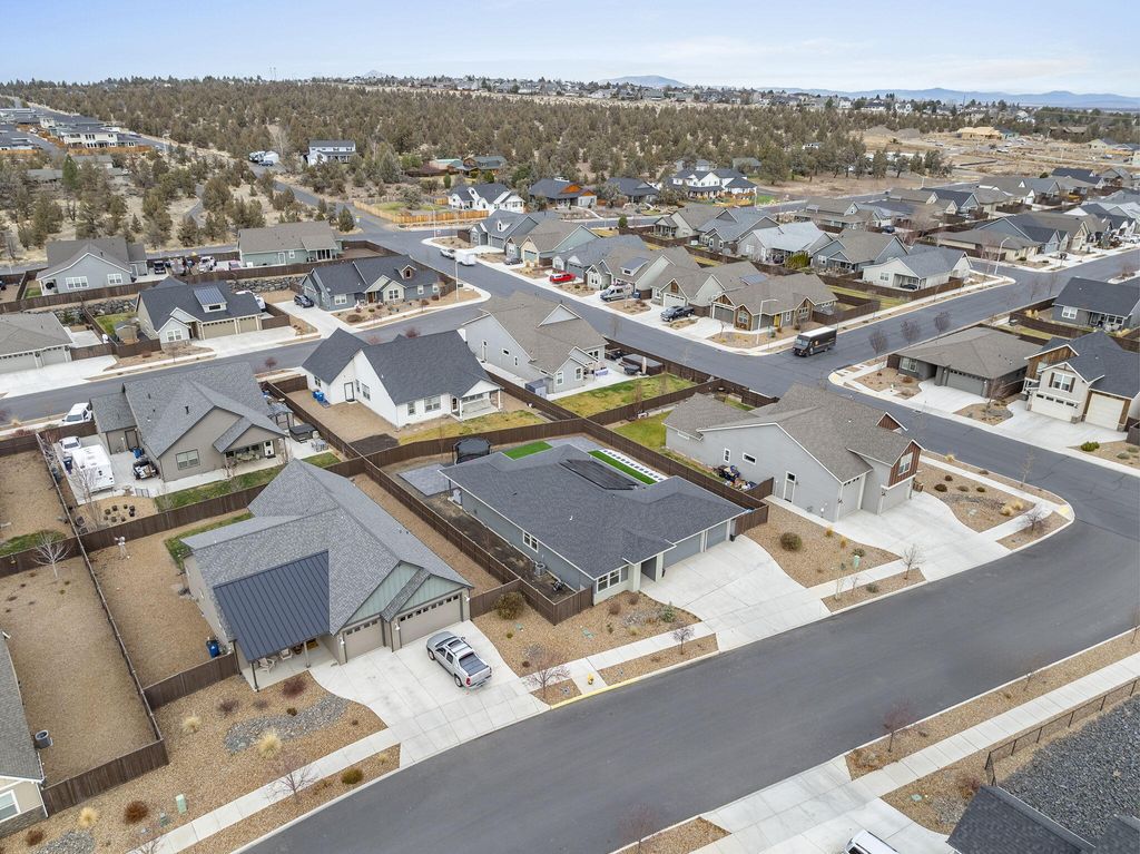 Welcome home to this thoughtfully designed Earth Advantage Certified single-level residence in SW Redmond. A place where everyday living feels effortless: tall ceilings, an open floor plan, and nearly 2,000 sq ft of comfort and function. The kitchen is ideal for gatherings with a spacious island, double oven, stainless appliances, and an oversized pantry. Engineered hardwood flooring carries throughout the main living space, anchored by a gas fireplace for cozy evenings in. The primary suite offers a true retreat with heated floors, a floor-to-ceiling tiled shower, and walk-in closet. Additional features include central AC, tankless water heater w/ recirc pump, laundry room with sink, and 3-car garage. Enjoy low-maintenance xeriscaping, fenced yard, covered patio plumbed for an outdoor kitchen + fireplace, and owned solar paid off at closing. Less than .5 miles to Sunriver Brewing, Backporch Coffee & Bonta Gelato. Community park, pavilion & dog park complete the package.