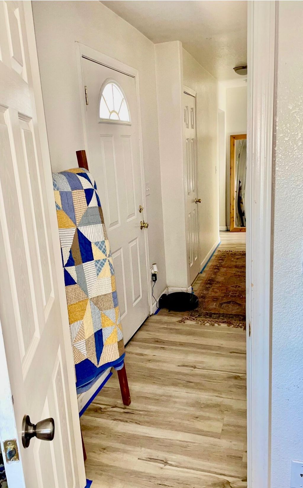 Amazing location on a very quiet cul-de-sac. This well-maintained, move in ready 3/2 cottage-style home features numerous updates deck and AC (2022), spray-in insulation by Win-R Insulation (2024), a 10 x 18 tuff shed (May 2023) and stainless steel appliances in kitchen. Fully fenced front and backyard with huge RV parking and a 3 bay, open barn. Inside features LVP throughout and professionally cleaned carpet in all 3 bedrooms and newly painted interior. Both bathrooms updated with new toilets, sinks, & lights. Large deck off the back door, ideal for outdoor entertaining with stunning sunrises, sunsets and views of Hogback Mountain. Home has access to water rights (no pump currently installed). Single car garage with entries to kitchen and back door accessible to back yard. Forced heating and air throughout.