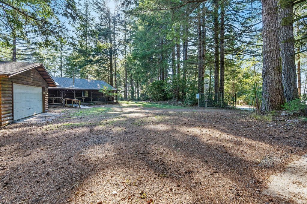 Charming log-style home on a gated, forested lot, complete with garage and shop! Cozy up by the wood stove, or take a