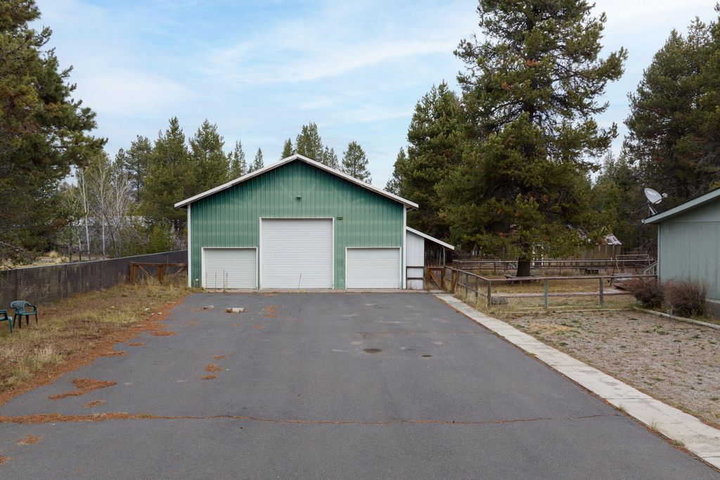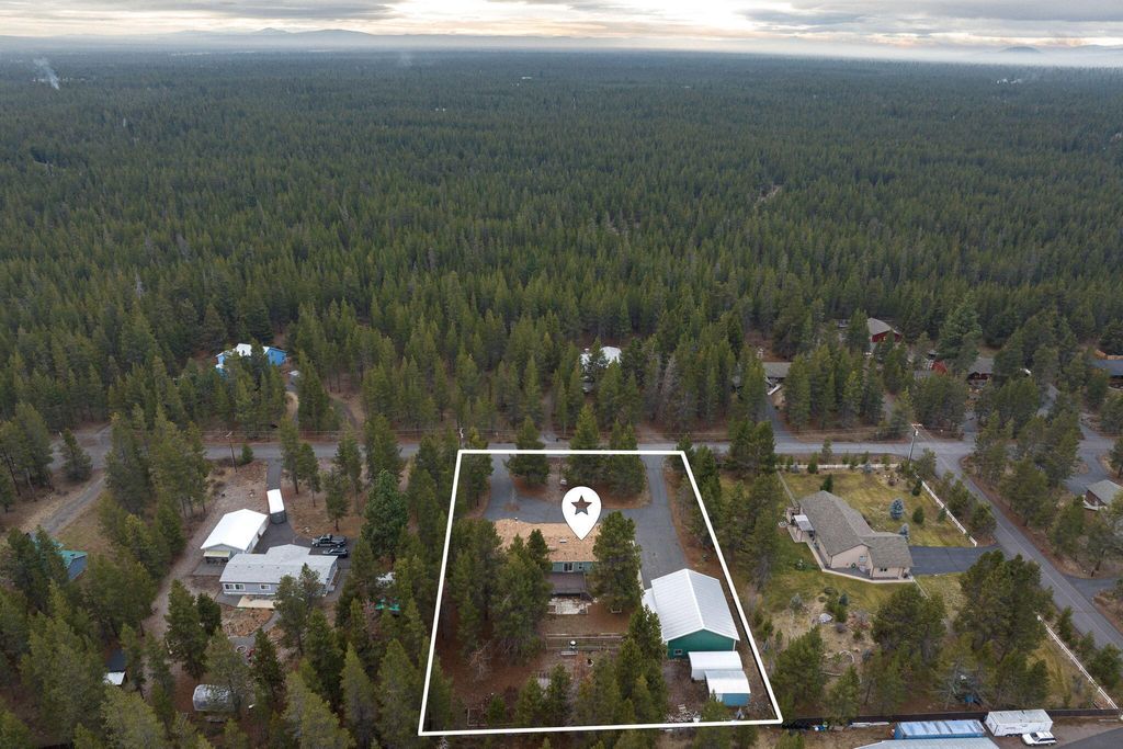 Move-in ready 3-bedroom, 2-bath manufactured home on 1.01 private acres surrounded by forest. Feels like custom build w/ super insulation & 2x6 walls. Living room w/ vaulted, beamed ceilings, certified wood stove & windows for natural light. Kitchen w/ tons of prep space, cook island, walk-in pantry & wall of windows. Family room w/ certified pellet stove, skylights & sliders to back deck. Primary suite w/ vaulted beamed ceilings, 2 walk-in closets, spa-like bath w/ skylights, dual vanities, walk-in shower, walk-in tub, flex space w/ built-ins ins for office or reading nook w/ sliders to deck. 2 more bedrooms, guest bath, & laundry room w/ built-ins, utility sink & exterior access for mudroom after yardwork. New carpet, laminate & roof in last year. 35x22 3-bay detached RV/garage w/ attached 23x35 shop w/ guest apartment w/ kitchen for multi-gen living. Upper shop level (22x11) includes bathroom. Room for animals, gardening, & outdoor living. 5 minutes to LaPine State Park.