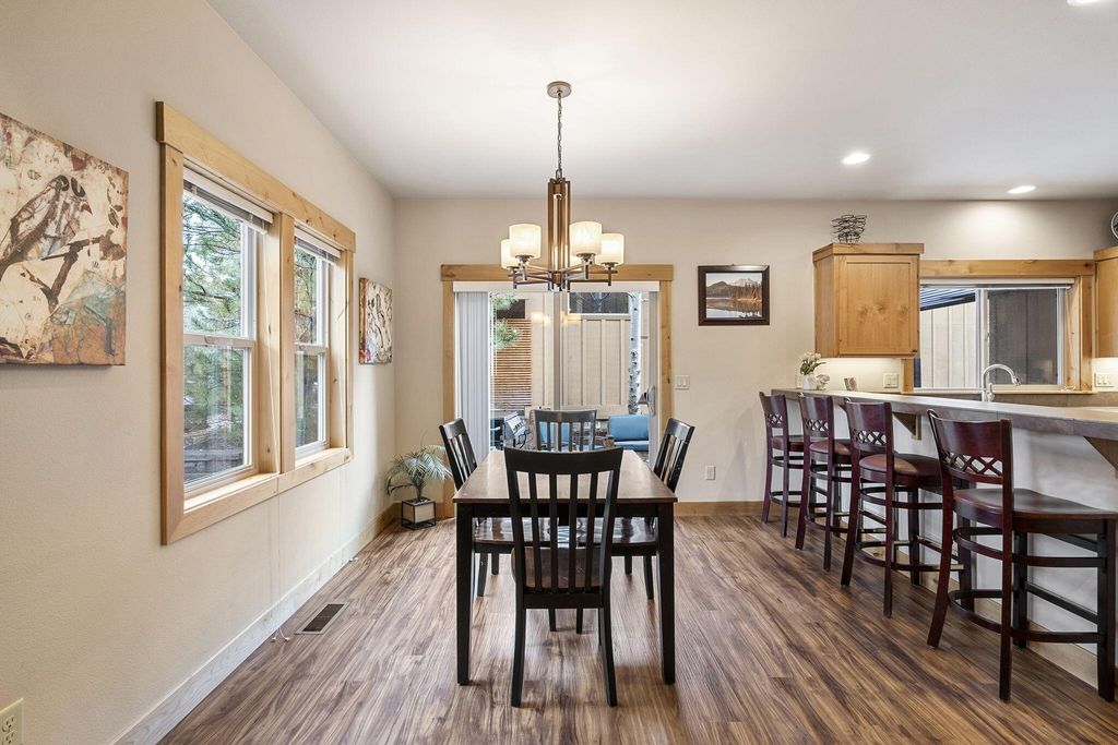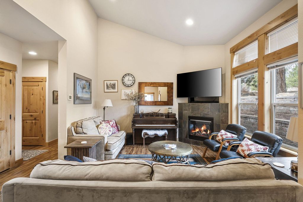Situated among the trees and minutes from the Cascade Highlands Trail system, the Grove, and Sparrow bakery. This charming cabin-style home is permitted for Airbnb use and offers low-maintenance living on Bend's sought-after west side. The main level features a primary bedroom with an ensuite bathroom, while the open-concept living room features vaulted ceilings, a warm fireplace, and abundant natural light. Beautiful wood-wrapped windows, real wood trim throughout the home enhance the feel. The kitchen includes an eating bar, stainless steel appliances, and great flow to the living space. Enjoy updated wood flooring, large spacious bedrooms, and a private hot tub perfect for relaxing after a day on the water, mountains, and trails. An attached 2-car garage with a dedicated EV charger offers excellent storage for gear and outdoor equipment. A versatile home ideal for full-time living, vacation use, and/or investment. Come see it for yourself!