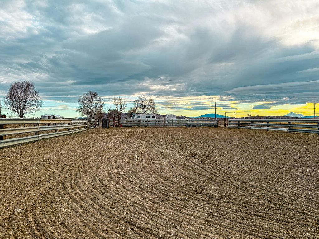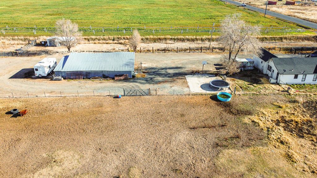 28.05 Acres of KID A Irrigated farm land! Just at the south edge of Merrill, Or which is a great farming community. There is a comfortable 3 bedroom 1 bath home, along with a 40X30 Machine Shed, An Outdoor Arena complete with cattle chute and 3 separate horse pens. The pasture is approximately 26 acres. 8X8 chicken coop with attached run, fully functional meat cooler. Approximately a 6000 sq ft established garden area, 12 new fruit trees planted in front of the home. This would be a great property to have a few horses or cows and put up your own hay. Property was fertilized by