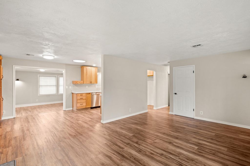Renovated and move-in ready! This updated single-level home features newer laminate flooring throughout, an updated kitchen with Corian countertops, double ovens and beautiful cabinetry,and both a living and family room for flexible living. With 3 bedrooms, 2 full baths, and an indoor laundry room, the layout is comfortable and functional. The primary suite stands out with a tiled steam shower and jetted tub for a spa-like feel. Outside, enjoy a huge Trex deck, an oversized yard, and a 2024 metal roof for long-term peace of mind. The backyard includes a powered shop, storage shed and the attached two-car garage offers multiple EV charging points and a newer electrical panel "”a rare find. Updated, spacious, and set on a generous lot, this home blends modern comfort with practical extras you don't often see at this price point.