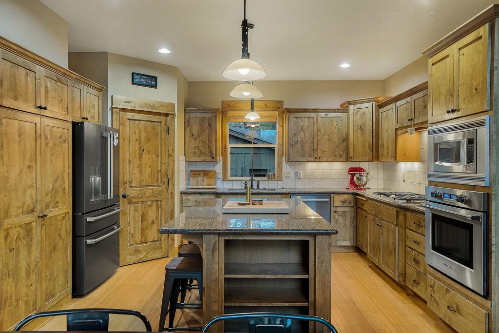 Set among the ponderosas in River Wild, this well-kept townhouse offers a rare mix of river ambience and easy Bend living. Step onto the private deck to hear the Deschutes just below or follow the nearby trail to the Old Mill. The vaulted great room brings in beautiful light, with bamboo floors, a stone-framed fireplace, and custom built-ins. The oversized loft adds great flex space and could be converted to a third bedroom. With a clubhouse, pool, and hot tub close by, and world-class recreation, trails, and Bend's vibrant mountain-town energy all around, this makes an ideal getaway or full-time retreat. Your river hideaway awaits.