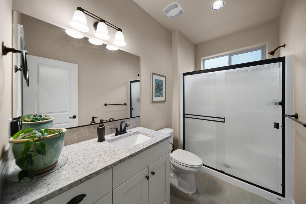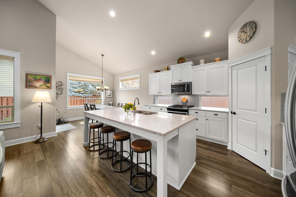 Move-in ready single-level home in the desirable Ochoco Pointe community! This beautifully maintained 3 bed, 3 bath home offers an open floor plan with vaulted ceilings, a rocked gas fireplace, wood-wrapped windows, and laminate flooring in main living areas. The kitchen features quartz counters, gas appliances, a large island, tile backsplash, and abundant natural light. Two primary suites provide flexibility, each with tile finishes and walk-in shower, in the main suite a walk-in closet, and a soaking