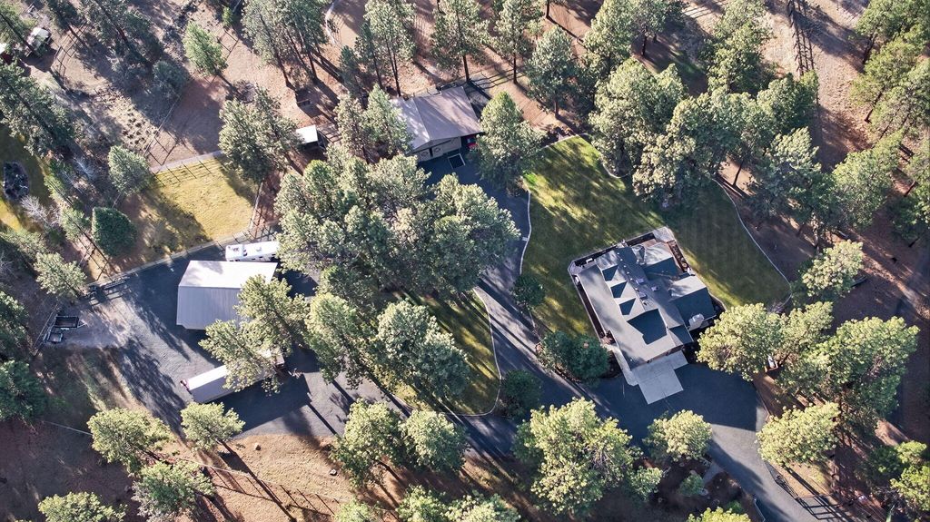 Horse property within 1 mile of Sisters on 6.77 acres! Located in the coveted neighborhood of Indian Ford Meadows! This 2,700 sqft immaculately maintained home with 3 bedrooms, primary on main level, 2.5 baths offers the perfect blend of country living. The interior features vaulted ceilings and skylights with natural knotty pine accents throughout the home. Propane fireplace located in the family room and kitchen area for warmth and convenience. Enjoy the peek-a-boo Cascade Mountain views from the upstairs balcony. The property is well-suited for those with equestrian interests, boasting a 2-stall horse barn and direct access to adjoining public land. Surrounded by tall Ponderosa Pines and beautifully maintained grounds. The wrap-around deck is perfect for relaxing and entertaining your guests. The multiple additional building structures allow for ample storage including a 1,728 sqft shop. RV Parking/RV Dump station. Seller is related to Listing Agent.
