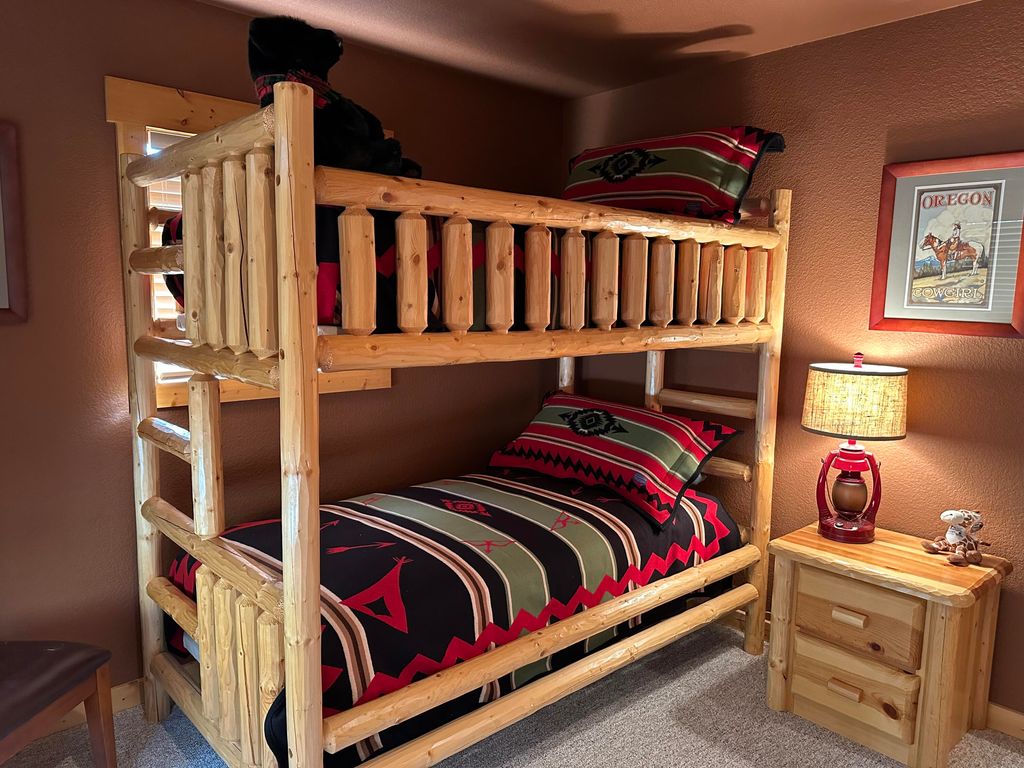 One of a kind 3 bedroom 2, bath vacation home with floor to ceiling fireplace and 2 car garage. Being sold by original owners and it has never been rented. Northwest look with top of the line log furnishings to complete the woodsy feel. Great as a primary residence or vacation home with large deck and hot tub. Furnishings are negotiable.