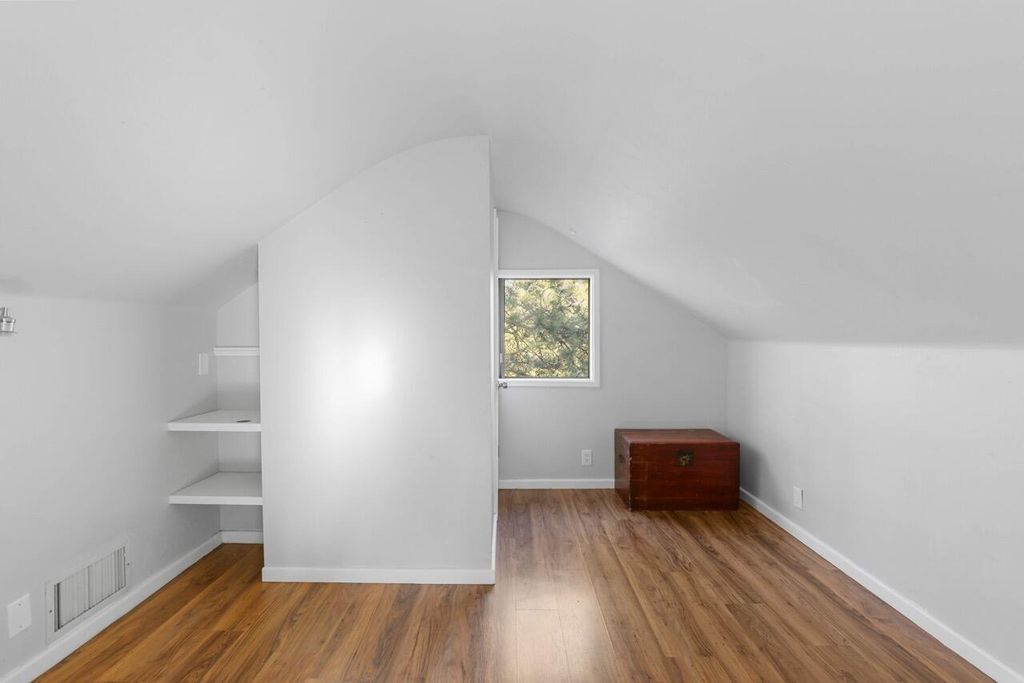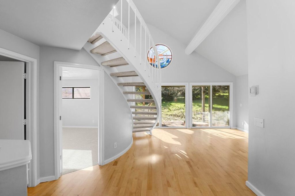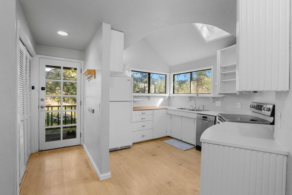 Tucked into the quiet hills behind Phoenix, this cozy 3-bedroom, 1.5-bath home offers 1,164 square feet of comfortable living on a generous 1.3-acre lot. The home is full of light, featuring skylights, high ceilings and a stained glass window. It has maple hardwood floors, a curved stairway, a bright loft and 2 bedrooms on the main level & one upstairs. The large outbuilding is already equipped with both electricity and water, providing excellent flexibility for storage, hobbies, or workspace needs. The property also features a gorgeous fenced organic garden and mature fruit trees. Surrounded by a peaceful neighborhood setting, this single-family home offers room to enjoy the outdoors while remaining close to local amenities.
