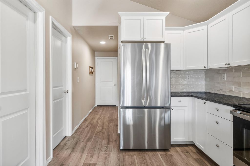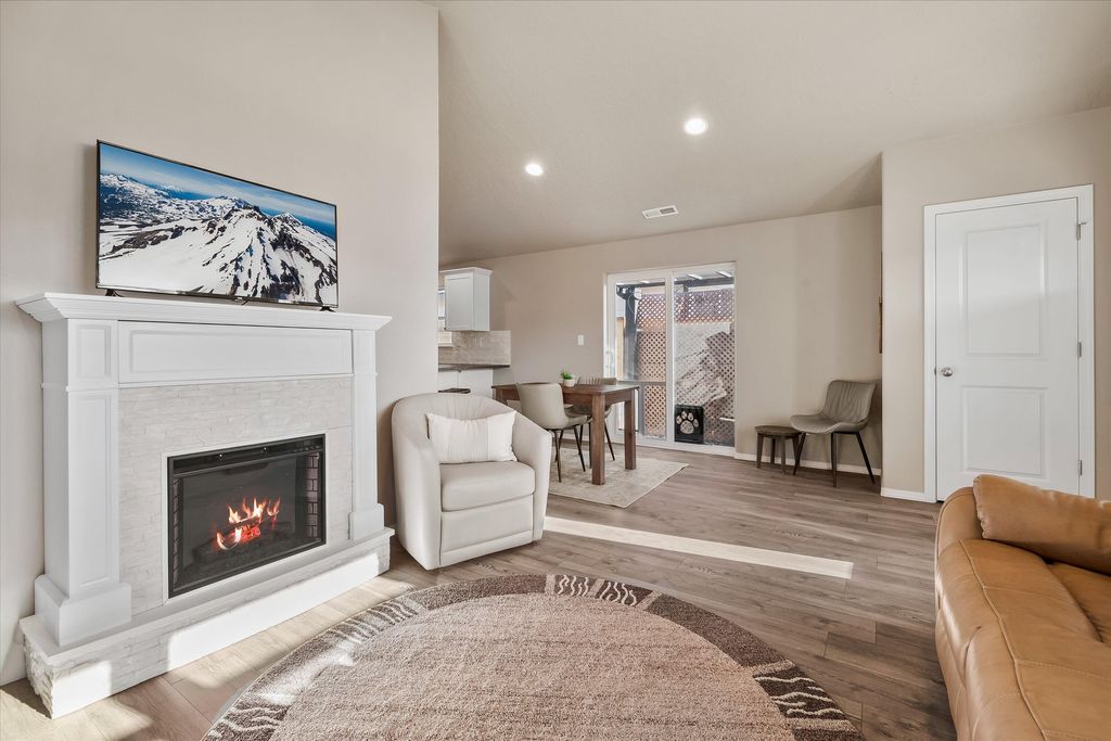 Turn key single story home built in 2023 offers 880 sqft of thoughtfully designed living space with two bedrooms, one bathroom, a dedicated laundry room, and a two-car garage. Unlike traditional townhomes, there are no shared living-space walls, providing added privacy and comfort. The modern kitchen features ample counter space, a convenient pantry, and opens seamlessly to the dining area and spacious living room"”ideal for everyday living. Outside, the fully fenced yard is low-maintenance. Air conditioning will provide you comfort in the summer months. This home is in excellent condition and designed for low-maintenance living. Conveniently located with easy access to Highway 97, local parks, and Tom McCall Elementary.