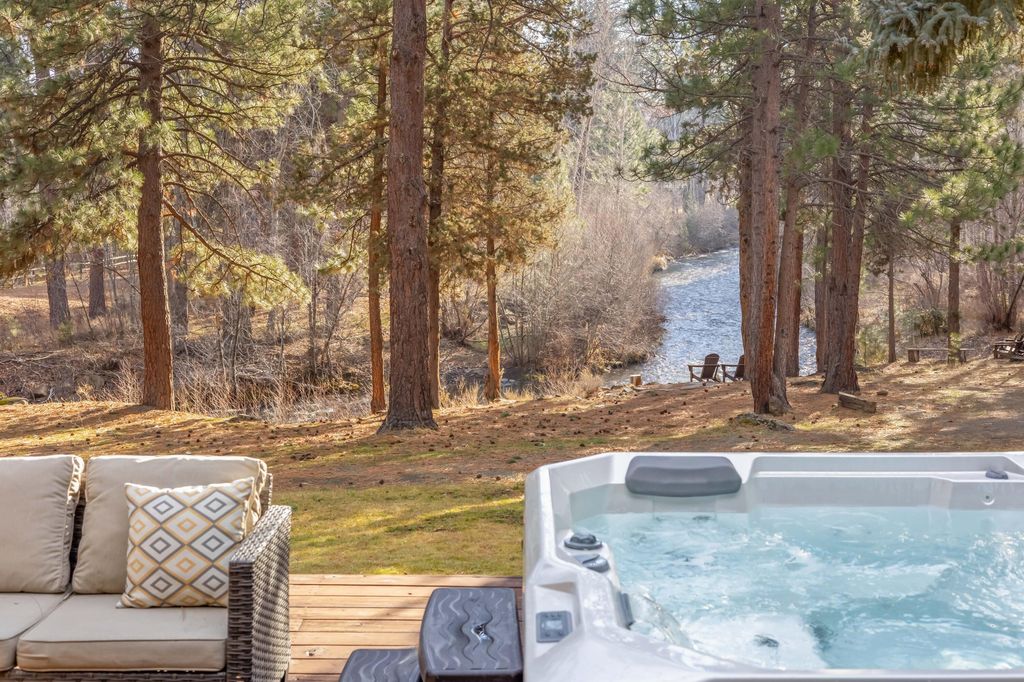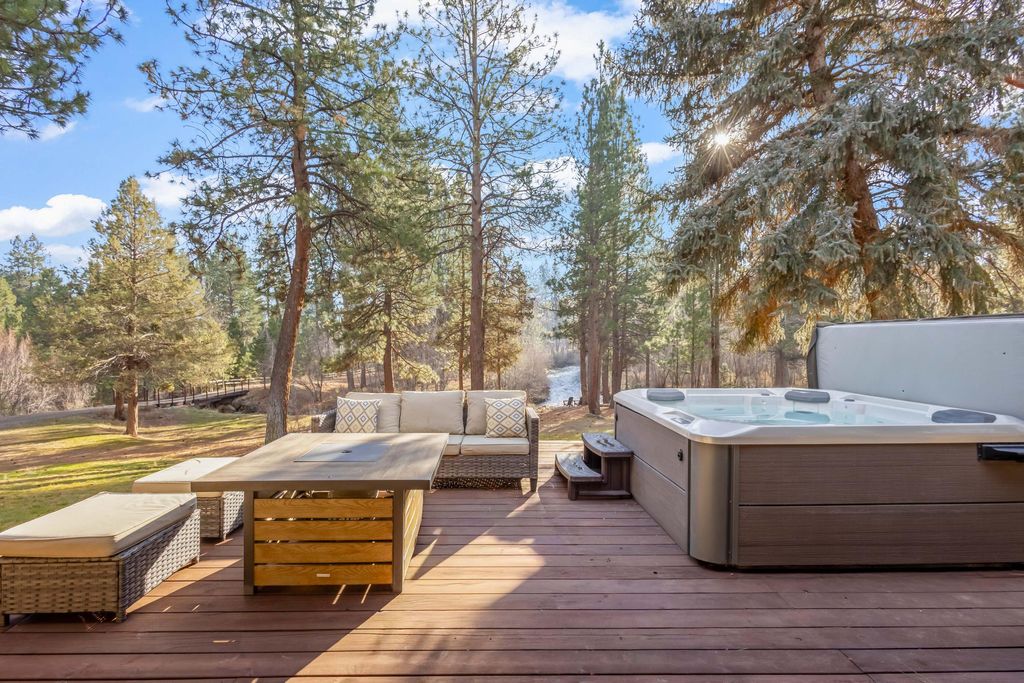 Highly private and peaceful waterfront acreage with approximately 1200' of accessible Whychus Creek frontage located a short distance from downtown Sisters. Interior of home features: Open floor plan; Large entertainer kitchen with locally crafted Cedar cabinets, granite and black walnut counters, maple hardwood floors leading into dining and living rooms which all have unobstructed views of Whychus Creek; Primary en suite and an additional bedroom/bathroom on the main level; Three remaining bedrooms, full bathroom, large bonus room are downstairs along with large utility room. Exterior features: Huge upper and lower decks with Creek views; 3.5 irrigated acres, flat pasture for hay production; EFU zoning with low taxes and multiple possible farm uses; Feeder barn, pole barn and detached garage for all covered storage and/or farm animals; Great mixture of Ponderosa Pine trees and Aspen tree groves. Home functions as a permanent home or also has a terrific vacation rental history.